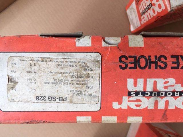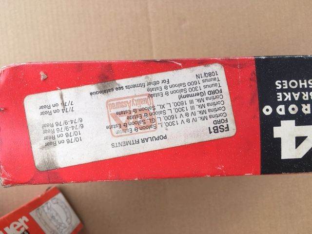 Posting for 6+ yearsFord Escort 1300 estate and van, (30-35K), FRONT brake shoes New Old Stock still boxed.