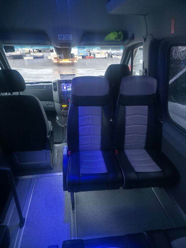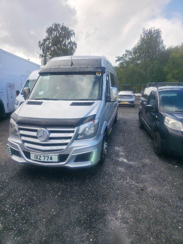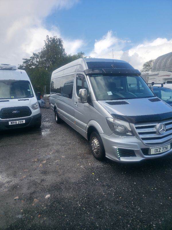 The Mercedes Sprinter 516cdi Date of the first register is 15/11/2018 XLWB 16seat Minibus is a high-quality commercial vehicle manufactured by Mercedes-Benz. This minibus features a Automatic transmission, and can seat up to 16 passengers comfortably. With a gross vehicle weight of 4600KG, 2143cc Cylinder capacity , this silver-coloured minibus is equipped with air conditioning, AM/FM stereo in-car entertainment, Ideal for transporting passengers, this Mercedes Sprinter is a reliable and luxurious option for those in need of a comfortable , spacious and economical minibus . With decent space for luggage in the back can take up to 10 small suitcases.