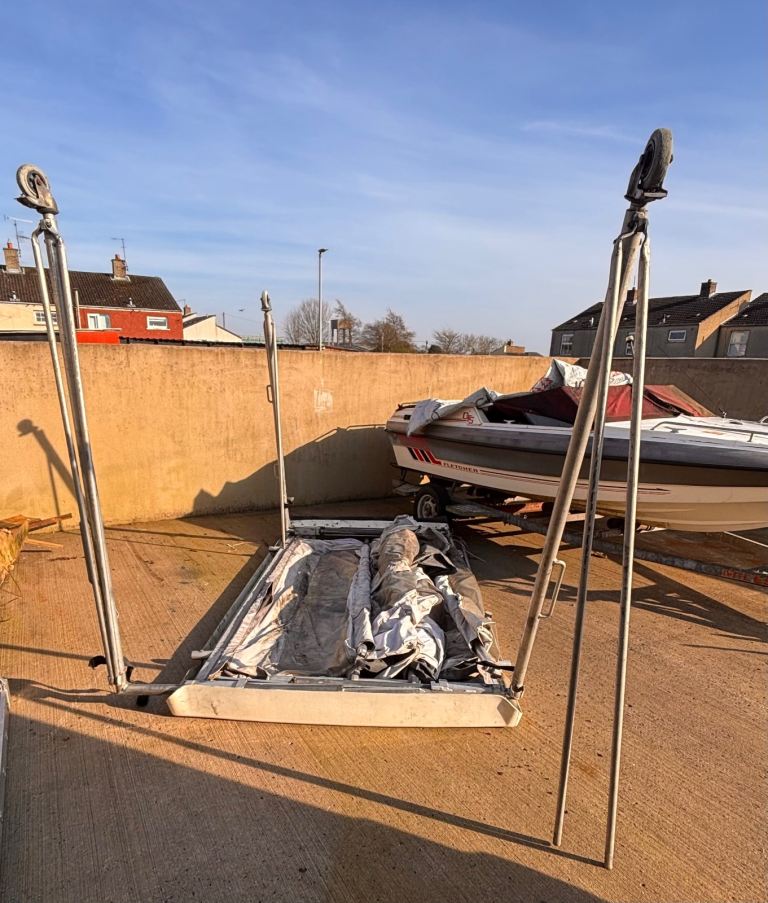 Canapé details.. mobile paint spray booth.. came of a mk7 transit but will fit other vans.. it attaches to van roof and it all folds up on both sides… and when it’s being used it can be unfolded and detached from the van so you and leave it up in place and drive off leaving it on its roller wheels so you can move it around… it all galvanised and has canvas sides that zip together… it was a special order for a mobile car paint spray company.. call or text on WhatsApp