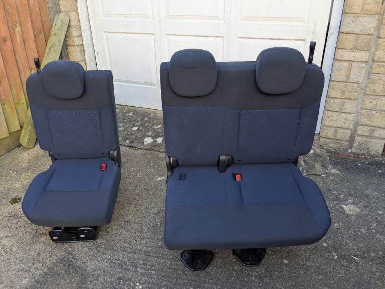 Middle row twin seats in blue. Good condition and to fit a Nissan NV200. Collection only please from Oundle.