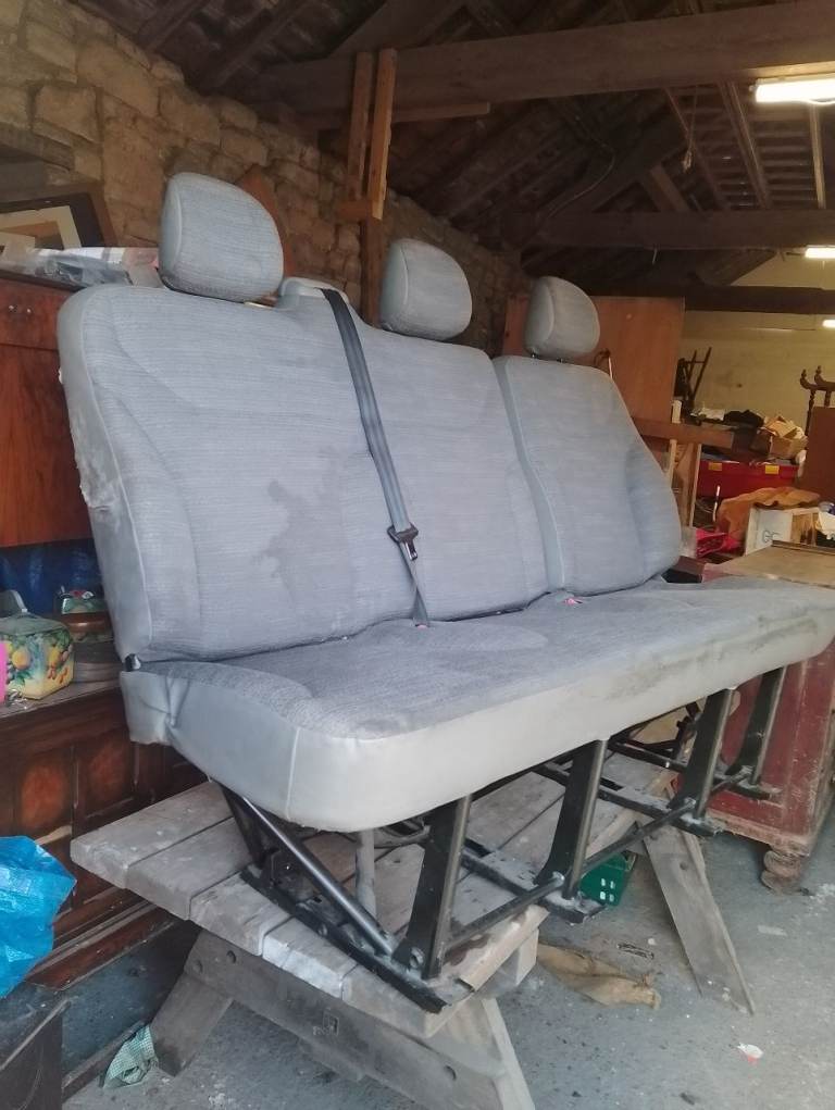 For sale,a triple bench seat from the rear of my Trafic window van.Generally in good nick,slight split on the left side(out of sight when fitted),and a smaller split near the rear of the right hand head-rest.Also the fitting bolts.