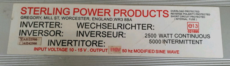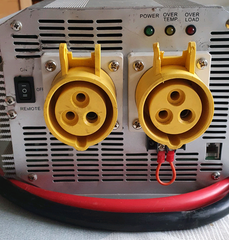 A used Sterling 12v / 110v 2500 watt modified sine wave inverter. Input is 10 - 15v DC and 110v AC 50Hz output through 2 x 110v power sockets. It comes with it's original supplied 50mm² cable. I am also including a new & unused control panel / switch. Any questions please phone or text. Price reduced from £120 to £100 now £80