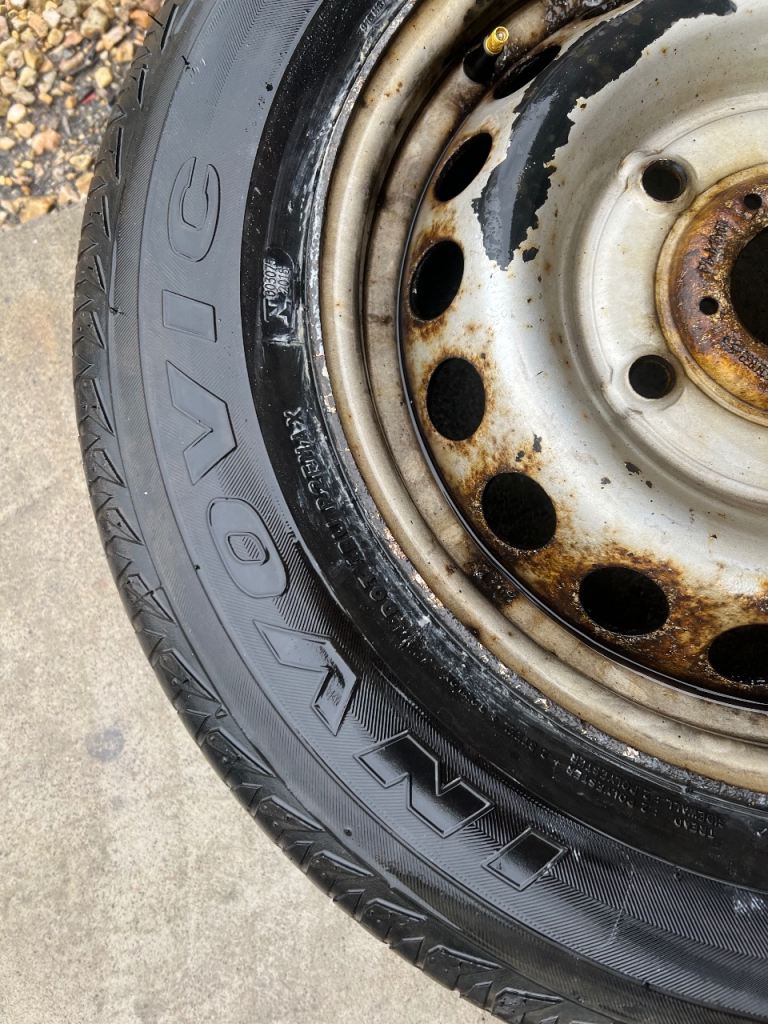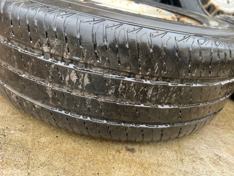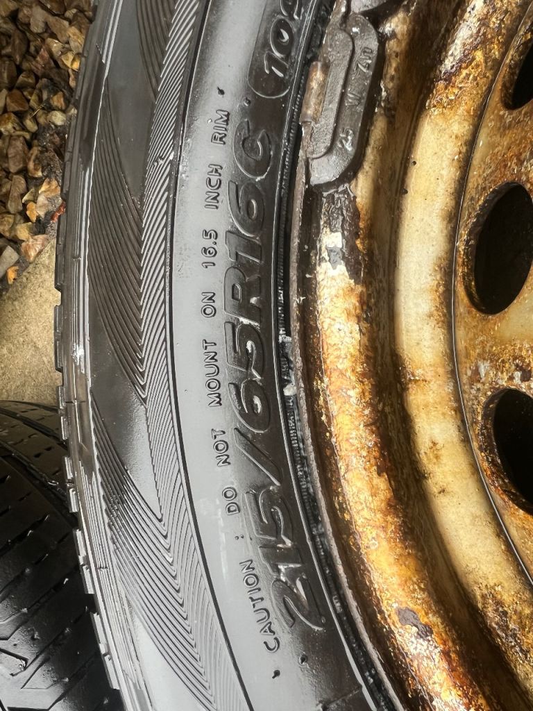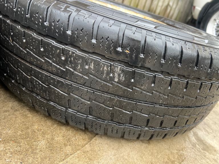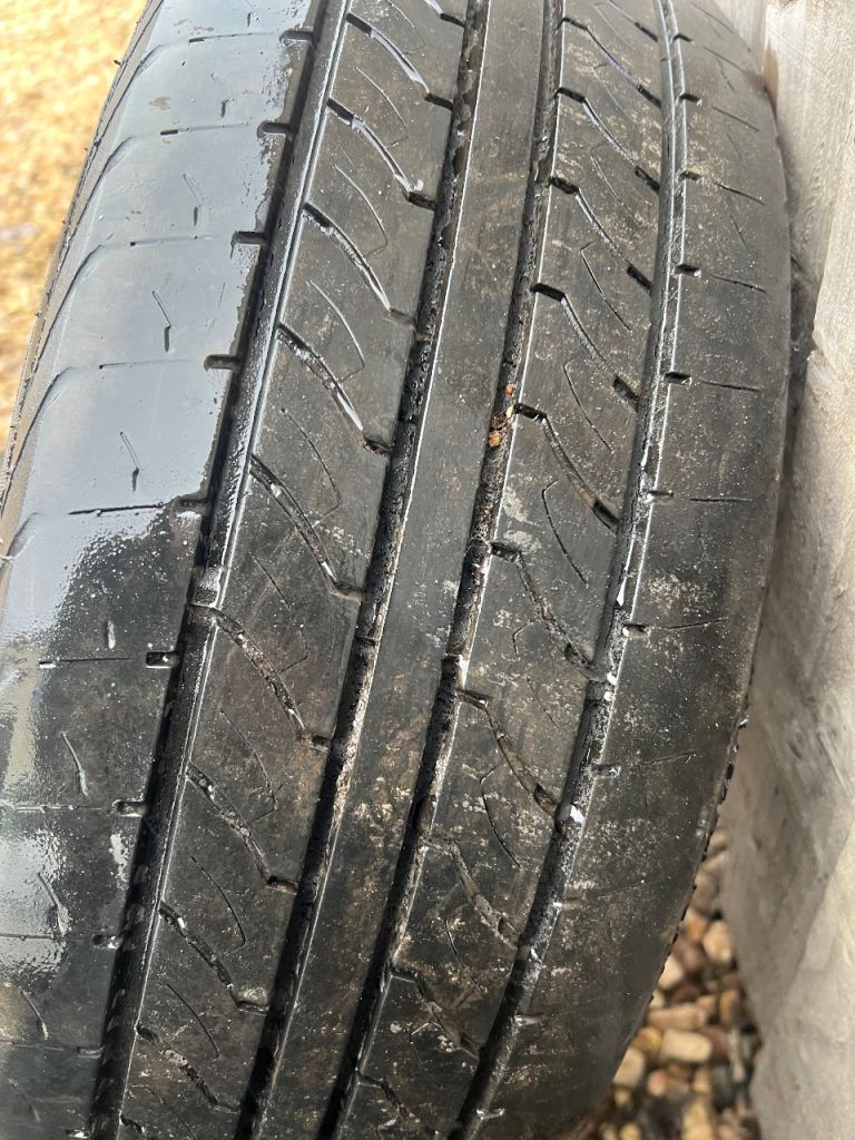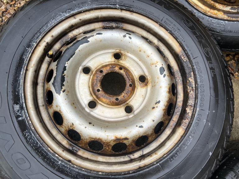 Set of 4 16” Steel Wheels with a mixed set of 215/65x16 Tyres, decent tread on all 4, slight wear on outer edges of one, alloys now fitted on the van so not required