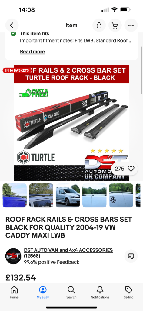 Posting for 1+ monthsVw caddy long wheel base roof rack