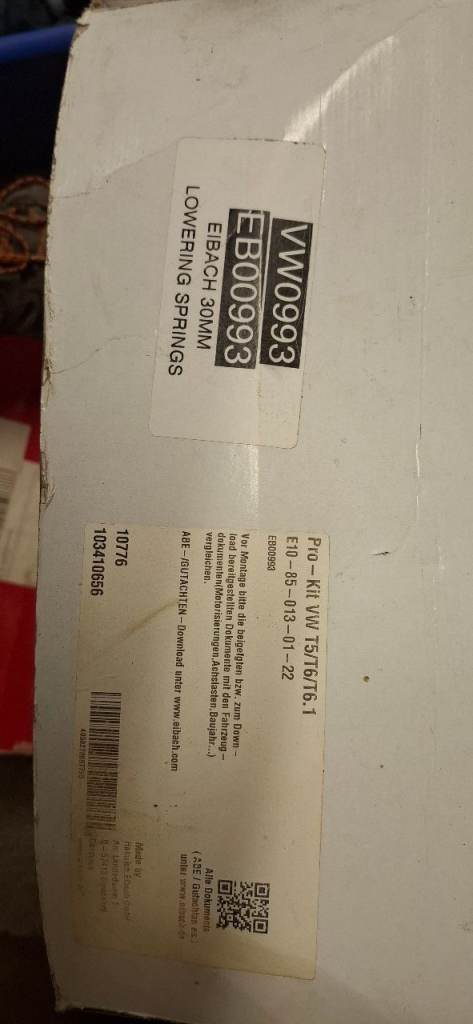 Eibach 30 mm lowering springs kit to suit T5/T6 Transporter. Front springs brand new, rears used briefly.