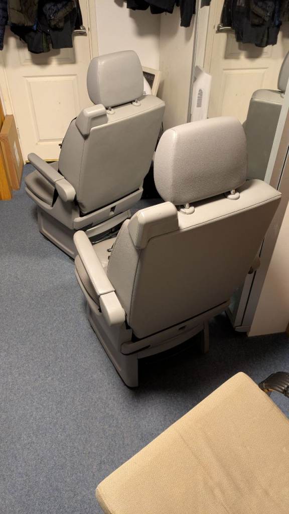 Swivel, integrated seatbelts, storage drawers. Can be fitted facing front or rear.