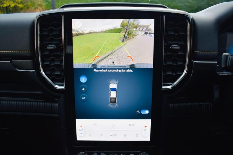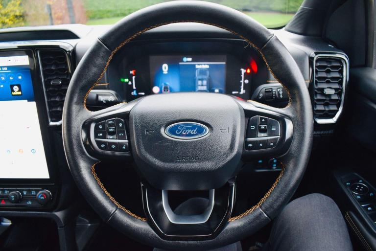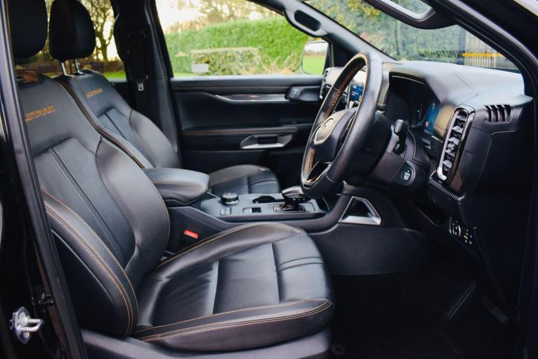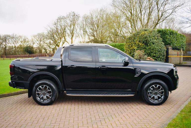 This 2024 Ford Ranger Wildtrak is a superb example, having had only one owner since new. This four wheel drive pickup truck is powered by a 2.0 litre diesel engine, delivering 202 bhp and meeting Euro 6 emission standards. It comes equipped with the desirable Technology Pack 20, which includes adaptive cruise control, automatic headlights, and front and rear parking sensors along with a rear camera. Further enhancing its practicality and comfort are LED reflector headlights, a heated steering wheel, a towbar for its 3500 kg towing capacity, and electronic automatic air conditioning.The Ford Ranger Wildtrak stands out with its impressive fuel economy, achieving 32 miles per gallon, and its low CO2 emissions, indicating a more efficient drive compared to many similar vehicles. This combination of robust performance, advanced technology, and excellent running costs makes this Ranger a compelling choice for those seeking a capable and well appointed pickup.