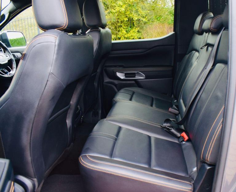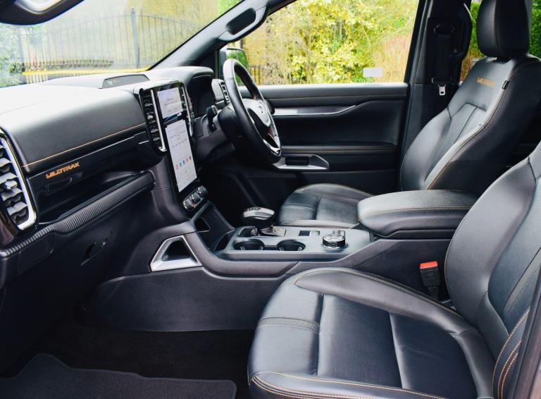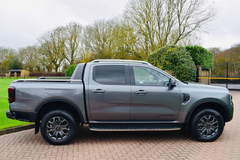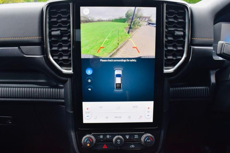 This 2024 Ford Ranger Wildtrak is a superb example, having had only one owner from new. This impressive 4x4 pickup features a powerful 3.0 litre TD V6 EcoBlue diesel engine, delivering a robust 237 bhp. Its Euro 6 compliant status ensures it meets current emissions standards. The Wildtrak derivative is well equipped, boasting LED reflector headlamps for excellent visibility, a heated steering wheel for comfort in colder weather, and a towbar ready for a 3500 kg towing weight.Further enhancing its capability and comfort, this Ranger includes the Technology Pack 50, which incorporates Blind Spot Assistance, Adaptive Cruise Control, automatic headlights, and front and rear parking sensors along with a rear camera. Electronic automatic air conditioning provides a pleasant cabin environment. These features collectively demonstrate how this particular Ford Ranger Wildtrak offers a superior driving and ownership experience compared to other vehicles in its class.