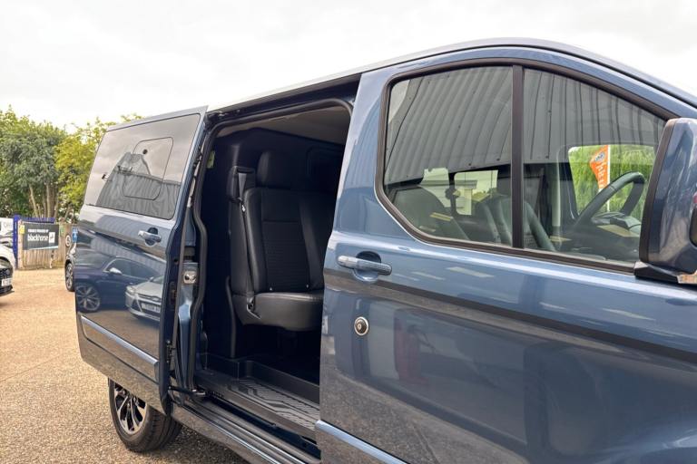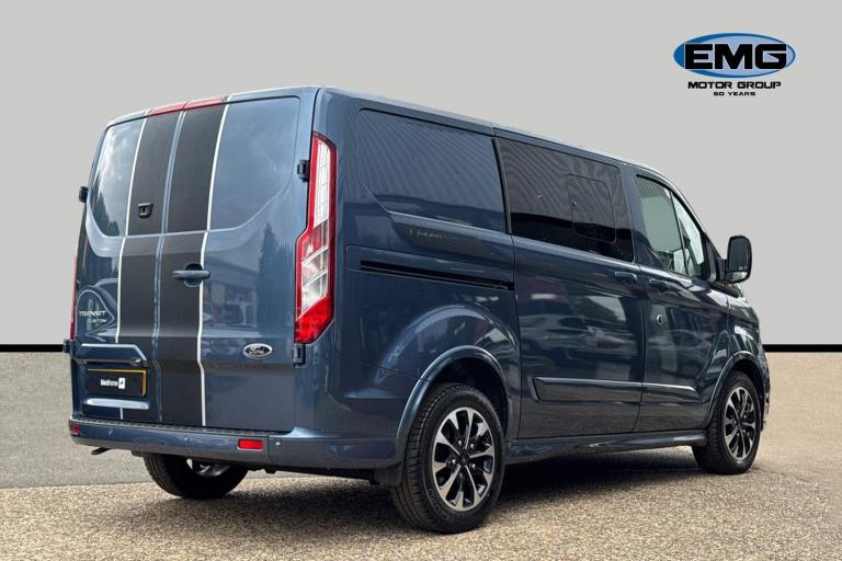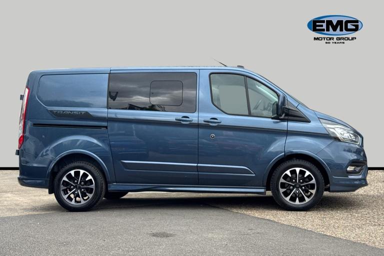 EMG Haverhill is pleased to offer you this rare and stunning Ford Transit Custom Crew 2.0 Ecoblue Sport Van L1 H1 finished in Chrome Blue premium metallic paint with 23491 miles on the clock! Maintained to the 2 year/25k mile Ford schedule this vehicle has been service stamped in May 25 at 20985 miles and the new owner will benefit from the remaining Ford 3 year warranty until June 2026! With Sportvan body-styling giving full colour coded side-skirts and bumpers as well as the stripes and side decals the Sport model line makes a real visual impression and truly stands this commercial vehicle out from the rest! The vehicle comes with a wealth of standard equipment that includes Apple Car Play and Android Auto Connection Air Conditioning Cruise Control Front and Rear Parking Sensors Rear Camera Auto Sensing Headlights Rain Sensing Front Wipers Heated Front Seats Quick-Clear Heated Windscreen Rear Privacy Glass 17-Inch Diamond Cut Alloy Wheels Power-Folding Door Mirrors Dual Rear Sliding Doors USB ports DAB radio and so much more! At EMG Haverhill every used car completes a vigorous multi-point point mechanical inspection and road test by our fully qualified Ford technicians before being handed over. For further details please call our friendly sales team on 01440 840350 to arrange a test drive a personalized video of this exact vehicle part exchange valuation or to answer any other questions you may have. EMG Haverhill is a family-run business supplying new and used vehicles across the UK for over 50 Years and look forward to offering you a wonderful customer experience from end to end of your purchase journey! COMPETITIVE FINANCE PLANS AVAILABLE - Ask for your quote today!