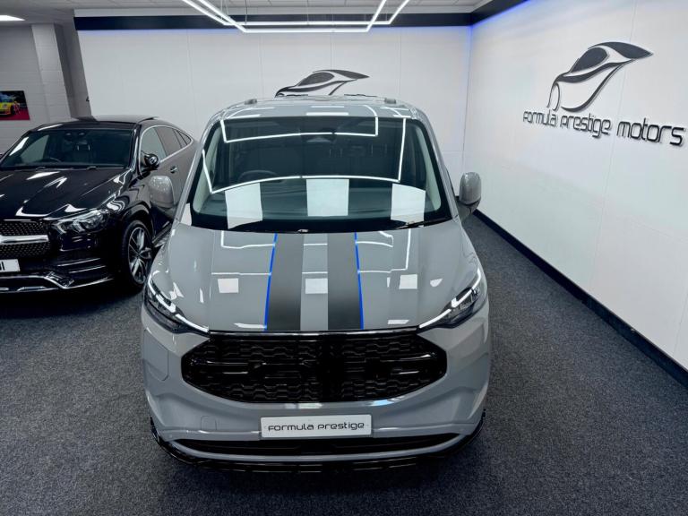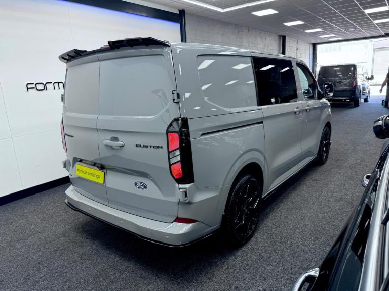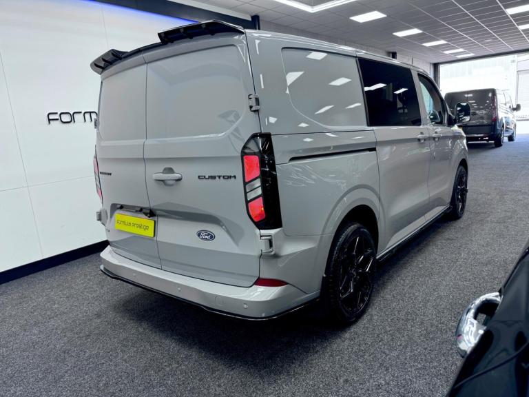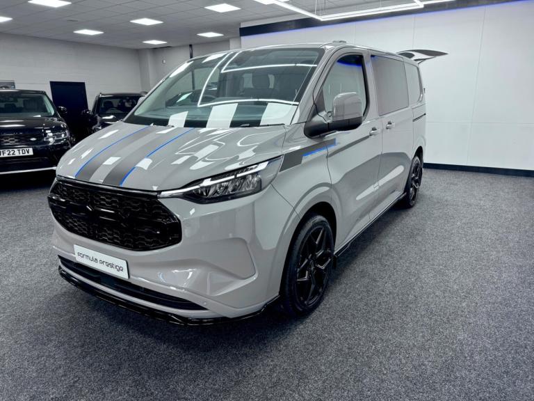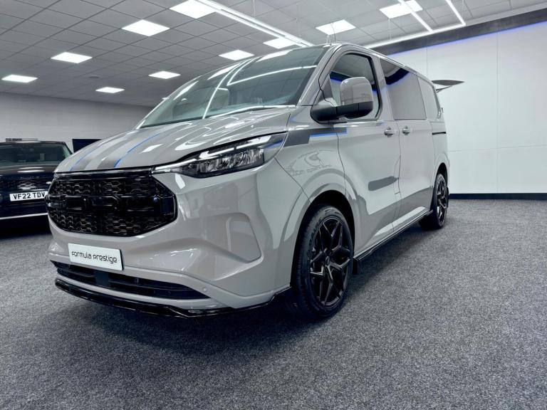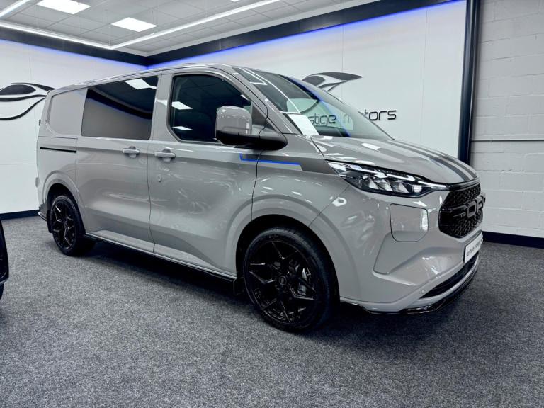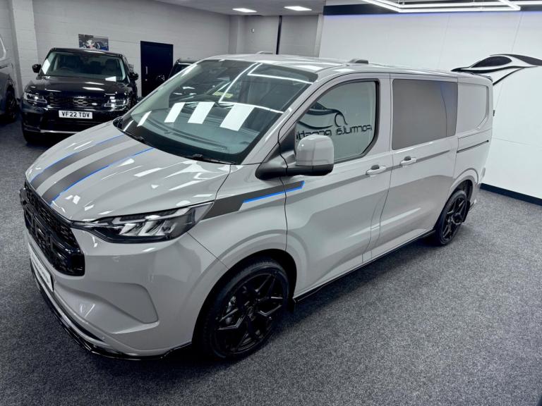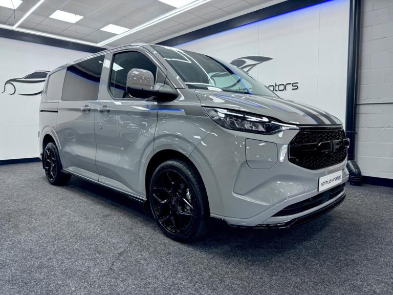 ALSO AVAILABLE IN (DARK) MAGNETIC GREY!!With only 350 miles on the clock this 2025 Ford Transit Custom 320 Limited is looks absolutely fantastic finished in Grey Matter with Gloss Black Sport kit and upgraded 20 inch wheels. As a 2.5 320 Duratec 11.8kWh Limited Crew Van Auto L1 H1 Euro 6 5dr, this plug-in hybrid offers a blend of efficiency and practicality, whilst meeting the Euro 6 emission standards. The trim is Limited. It comes equipped with desirable features such as fixed DSS LED headlamps with auto high beam, automatic air conditioning with climate control, and a reversing camera pack with front and rear parking sensors. The comfort dual passenger seat pack includes heated seats, and keyless entry adds a touch of convenience. All paperwork, 2 keys, charging cable etc.The 2.5L petrol plug-in hybrid engine delivers 229 bhp, which means it offers more power than many similar vehicles. Registered in 2025, this Ford Transit Custom combines modern technology with Ford's reputation for reliability.We also have msrt ms-rt models in stockFINANCE AND PART EXCHANGE AVAILABLE!