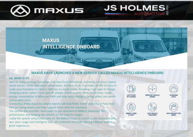 JSHolmes Maxus LCV CentreMaxus Deliver 7 – High-Performance Diesel Van!The Maxus Deliver 7 is the ideal van for your business, offering a robust diesel engine with a loadspace length of 2.9m and a payload capacity of up to 1,220kg, making it perfect for efficient and powerful operations.Key Features:Just Over 2.9m load lengthAdvanced SAIC p D20 Diesel Engine with 150HP of power6-speed manual gearboxDriver Assistance Systems: Automatic Emergency Braking, Lane Keeping Assist, Blind Spot DetectionApple CarPlay & Android AutoEuro VI E compliant for lower emissionsAbout J S HolmesEstablished in 1955, J S Holmes is a trusted, family-owned franchised dealership known for excellent customer service. As an official Maxus UK dealer, we offer comprehensive Sales and Aftersales support.Seamless Purchase ExperienceWe can provide detailed video walkarounds on request and offer flexible purchase options via phone, email, or in person. If this isn’t the exact vehicle you need, we can arrange a factory order to your specifications.Warranty InformationNew Vehicle Warranty: 5 years / 125,000 milesFinance Options AvailableHire Purchase, Contract Hire, Lease Purchase, and more—with easy click-to-sign documents.Transparent Pricing – No Hidden FeesThe price excludes VAT, RFL, Delivery, and Registration Fee.Images shown are for illustration purposes; based on non-metallic paint options.Questions?Contact Dan Cuthill at 01945 410243, and check out our customer reviews to see why JSHolmes is the trusted partner for businesses., 12.3in Touch Screen with MP5 - Bluetooth - Carplay - Android Auto,16in Steel Wheels 6.5,2 Smart Keys and Keyless Start,360 Camera,4 Speakers,4.2in LCD Instrument,6 Airbags - Front - Side - Curtain - For Driver and Front Passengers,ABS - Anti-lock Braking System,AEBS - Automatic Emergency Braking System,Adjustable Overspeed Warning,Anti-Glare Interior Mirror,Automatic Front Air Conditioning,Automatic Headlight,Automatic Windshield Wipers,Blind Spot Detection and Door-Open Warning System,Central Lock,Cruise Control System,DAB Radio,DMS - Driver Monitor System,DPF One Key Regeneration,Driver Seat with Single Armrest - Manually Adjustable - Height - Sliding - Reclining - Lumbar Support - Cushion,Driver and Passenger Side Power Windows - One Touch Up and Down,Dual Passenger Seat,EPB - Electric Parking Brake,ESP-EBA-HHC,Electric Power Steering,Emergency Lane Keeping Assist System,FCW - Front Collision Warning,Front Radar,Front and Rear Fog Lights,Full Steel Bulkhead,Heated Driver Seat and Heated Dual Passenger Seat,Heated Exterior Mirrors,Heated Windscreen,Integrated Rear Step,LDW - Lane Departure Warning and LKA - Lane Keeping Assist System,LED Cargo Lights,LED Headlights and LED Rear Taillight,Lane Change Assist System,Man-Made-Leather Multifunction Steering Wheel,Rear Cross Traffic Alert,Rear Radar,Rear Trailer Tow Interface,Rear Trailer Tow Interface with Controller,Rear Wing Doors with 90-180 Degree Opening,Reversing Camera,Roof Rack Mounting Points,Safety Belt Reminder,Single Sliding Door,Speed Limit Information Function,Steel Cargo Floor,Tyre Pressure Monitoring System,USB Input - x1,Windows - Power with One Touch Up-Down - Front,eCall