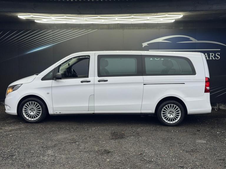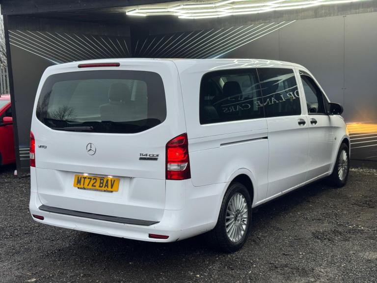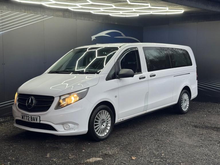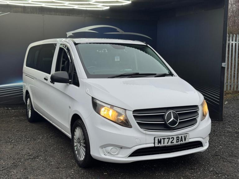 This 2022 Mercedes Benz Vito 2.0 114 CDI SELECT Tourer is a superb example, having had only one owner since new. This L3 Euro 6 compliant model boasts a powerful yet efficient 2.0 litre diesel engine, delivering 134 bhp. The SELECT trim level ensures a comfortable and convenient driving experience, featuring TEMPMATIC air conditioning for consistent cabin temperature, a rain sensor that automatically activates the headlights, and the Audio 30 system which seamlessly integrates Android Auto, Apple CarPlay, and Bluetooth connectivity for your entertainment and communication needs.This Vito is designed to offer excellent value, with highlights that set it apart. Its impressive fuel economy of 39 mpg means fewer stops at the fuel station, while its low CO2 emissions contribute to a more environmentally conscious drive. Furthermore, its low insurance group rating makes it an economical choice for many drivers. These factors combined indicate that this Mercedes Benz Vito offers a superior ownership proposition compared to similar vehicles on the market.This vehicle has been professionally wrapped in white, this can be removed upon request.