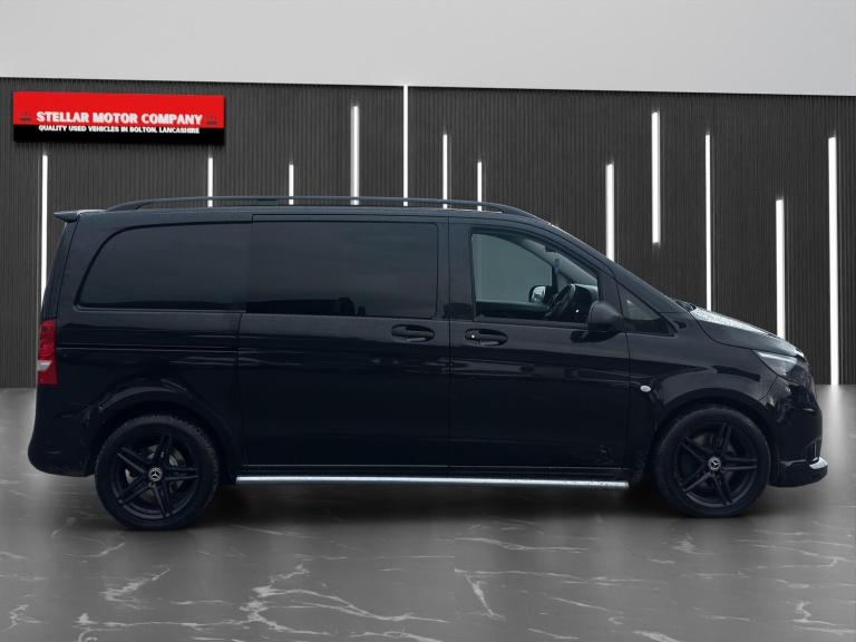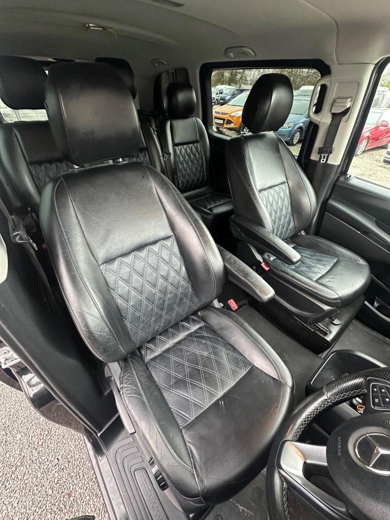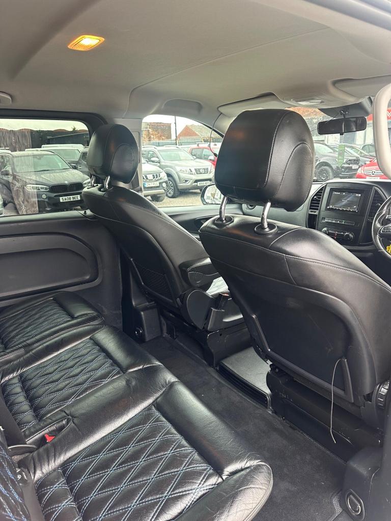 Nice looking example of a factory crew cab Vito with 5 seats, MOT May 2026, top spec with extras such as leather seats, roof rails, alloy wheels, chrome side steps, chrome exterior kit, parking sensors, air con, paddle shift, tinted rear windows etc…finished in a very nice metallic black…starts and drives brilliant…EURO 6 and ULEZ compliant…NO VAT…NO VAT…NO VAT