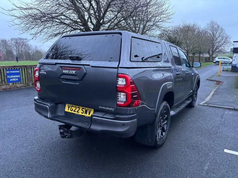 NO VAT, IN FABULOUS CONDITION INSIDE AND OUT, USED FOR PERSONAL USE ONLY, FULL LEATHER HEATED SEATS, SAT NAV, REAR PARKING CAMERA, FRONT AND REAR PARKING SENSORS, CRUISE CONTROL, LANE WARNING SYSTEM, REAR CANOPY WITH SIDE OPENING WINDOWS, NO VAT, FINANCE AVAILABLE, This 2022 Toyota Hilux Invincible X is a superb example, having had only one owner since new. This robust 4x4 pickup truck is equipped with a powerful 2.8 litre D-4D diesel engine, delivering 201 bhp and a Euro 6 emission class. Its Invincible X trim ensures a high level of specification, including Intelligent Adaptive Cruise Control for relaxed journeys, LED headlights for clear visibility, and a Smart Entry and Smart Start system for convenience. You'll also appreciate the seamless Bluetooth connectivity and Smartphone Integration, supporting both Apple CarPlay and Android Auto, keeping you connected on the go.With a notable towing weight of 3500 kg, this Hilux is ready for demanding tasks. Its fuel economy is highlighted at 33 mpg, and it also boasts low CO2 emissions, indicating its efficiency compared to similar vehicles. The four wheel drive system provides confidence and capability in various conditions, making this 2022 Toyota Hilux Invincible X a well maintained and highly capable choice.