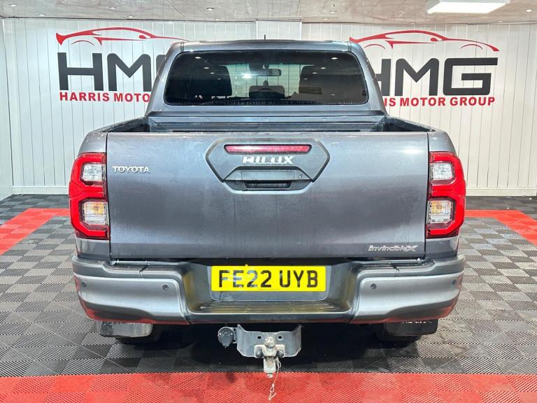FOR MORE VEHICLES NOT LISTED ON AUTOTRADER PLEASE VISIT [Website URL removed] a full service history and a clear vehicle history check, this 2022 Toyota Hilux 2.8 D-4D Invincible X 4WD Euro 6 (s/s) 4dr represents a superb example of this capable pickup. The Invincible X trim level ensures a premium experience, powered by a robust 2.8 litre diesel engine delivering 201 bhp. This Four Wheel Drive model is equipped for any task, featuring a substantial 3500 kg towing weight and a towbar with flanged 13 pin wiring. Inside, you'll find comfort and convenience with heated front seats and Bluetooth connectivity. A 12 month MOT will be provided upon purchase, offering peace of mind.This Toyota Hilux stands out with its impressive fuel economy, achieving up to 33 mpg, and its low CO2 emissions, indicating a more efficient and environmentally conscious performance compared to similar vehicles. The combination of its powerful 201 bhp engine, advanced Four Wheel Drive system, and extensive towing capacity makes it a highly versatile and dependable choice for both work and leisure.FREE DELIVERY WITHIN 40 MILES AT ADVERTISED PRICE!! NATIONWIDE DELIVERY, DRIVE AWAY INSURANCE, FINANCE AND WARRANTIES AVAILABLE ON ALL CARS! Walk around video available via whats app. Same day delivery available!! All vehicles come with an Engine service which consists of: Oil change, Oil filter, Fuel Filter, Air Filter and Cabin Filter! 2022 22 Reg Toyota Hilux 2.8 D-4D Invincible X 4WD Euro 6 (s/s) . Drives Flawlessly without any issues. Gearbox and engine are spot on. Hpi Clear. Will come with 12 Months Mot. 99,482 Miles Warranted with Service history. 2 keys, Heated seats, Reverse Camera, Sat Nav, Alloys, Air con and much more. Read specification list below. Ring for more information. Part Exchange at TRADE price, Late viewings also available!