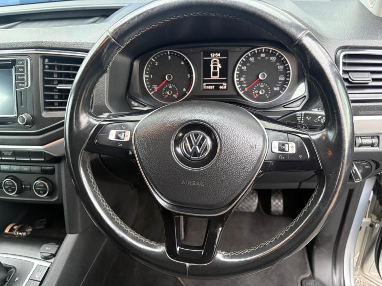 This 2017 Volkswagen Amarok Highline is a robust and capable vehicle, presented in excellent condition. Powered by a potent 3.0 litre TDI V6 BlueMotion Tech engine, this automatic 4Motion model boasts Euro 6 emissions compliance and a substantial towing weight of 3100 kg, making it ideal for demanding tasks. The Highline trim level ensures a premium experience, complemented by features such as front and rear parking sensors with a rear view camera, and Climatronic air conditioning for ultimate comfort.The Amarok's 221 bhp engine provides impressive performance, and its Four Wheel Drive system ensures confident handling in various conditions. Further enhancing its appeal are Bi-Xenon headlights with LED daytime running lights, a Winter Pack including heated seats for those colder journeys, and Bluetooth connectivity for seamless mobile phone integration. These features collectively position this Amarok as a superior choice compared to other vehicles in its class, offering a blend of power, comfort, and advanced technology.