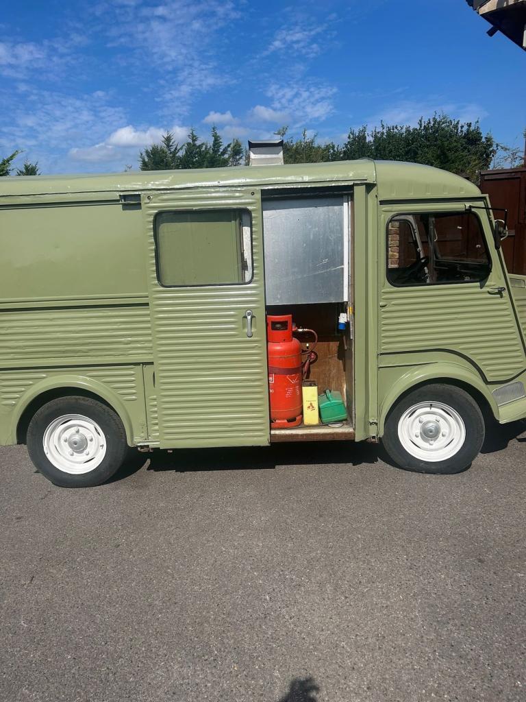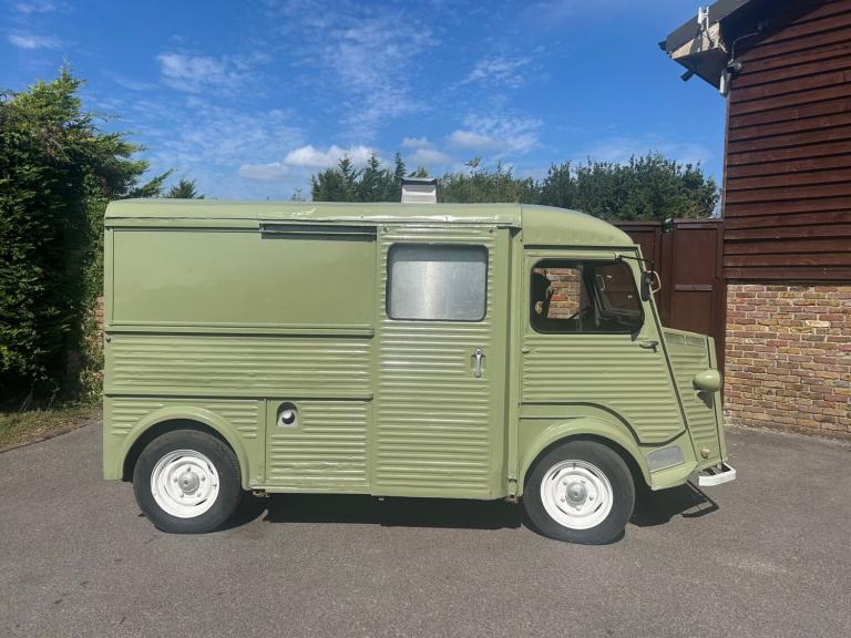 A INTERESTING EXAMPLE OF THE CITROEN HY VAN BUILT IN 1967 WITH AN INTERNAL CATERING KITCHEN CONVERSION. THE CITROEN VAN IS U.K. REGISTERED CORRECTLY RECORDING HISTORIC TAXATION CLASS ( NIL ) THE INTERIOR INCORPORATES : STAINLESS STEEL WORK SURFACES, HOT AND COLD TAP, DOUBLE SINK, WATER BOILER, 6 SURFACE WALL MOUNTED PLUGS AND GAS OUTLETS AND A FUSE BOX. IDEAL FOR A NEW OR EXISTING CATERING BUSINESS.