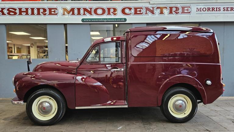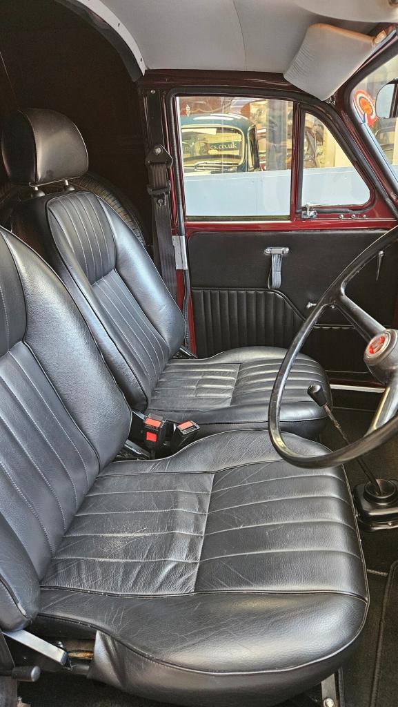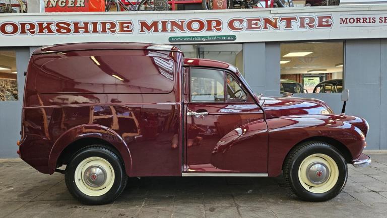 Are you looking for a Morris Minor van that is in tip top show standard condition?The this fully restored 1967 Maroon B one that has just landed with us at WRCC could well be the one for you.She is in such good condition she would make an ideal promo vehicle for a business or a show stopping Minor LCV for local shows!The Minor van is an older restoration with a bumper file of invoices and receipts that come with her.The restoration has been done to a high standard and all the usual areas such as the troublesome gutters and underside are in great order,The cab and rear body are in lovely order both inside and out, she has a vent fitted on the roof of the rear body for ventilation, this was fitted as part of her old life as a delicatessen delivery van! (pics of her in livery are in the file)Mechanically she is super and drives very well, there is no knocks whines or crunches and her 1098cc engine pulls her well.I have had the pleasure of driving her about on trips to the suppliers and she is great fun!She has been upgraded with servo assisted disc brakes, alternator and comfy recliner seats.In summary if you are looking for a top end Minor LCV that not only drives great looks the part too then this is the one for you, and well worth the trip to WRCC head quarters in Halifax.All our cars come to you with 12 Months MOT, 3 Months warranty and are full serviced before leaving,As well as the underside scraped, checked and recoated in your choice of protection.Transport can be arranged both nationally and internationally at a pre-agreed rate.Left hand drive conversion can also be carried out for overseas clients.Credit / Debit cards are accepted.Finance can be arranged should it be required,Part exchange on Morris Minors accepted also Classic cars, commercials and bikes considered