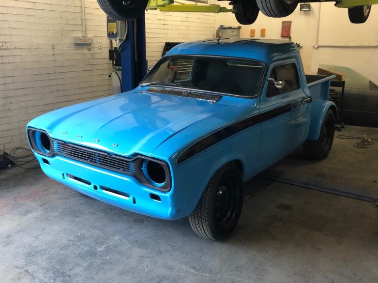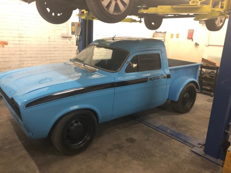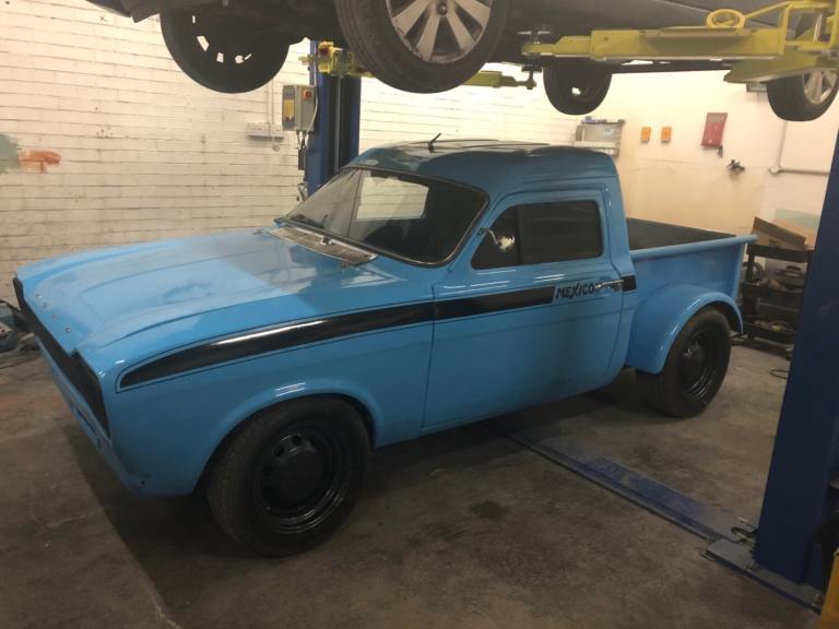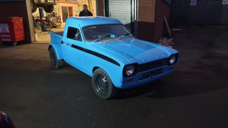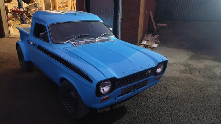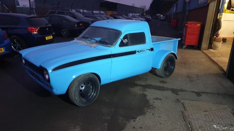 Ford escort Mk 1 pick up truck , 1970 ""H"" full V5 registered as ford escort pick up . (Tiltble)Just fully completed in Olympic blue with RS Mexico stripes ,dashboard etc colour coded ,fiat 2.0TC supermirafiori engine ,chopped roof and screen ,ideal show car or advertising truck for business , £8950