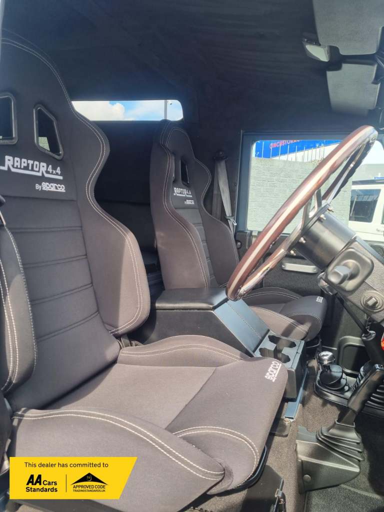 We are pleased to offer this stunning one of a kind Land Rover Defender 110 fully refurbished in factory condition. Upgraded 300 tdi engine with new timing belt, uprated K&N air filter, brake pipes, brake discs ,callipers, master pump, new springs and shocks. WIPAC LED all around, Urban led bumper, rear nas step bumper, Panoramic window, premium suede fabric roof liner, alpine window, sparco bucket seats, cubic box, usb charger, rear seat bench, new seals all around, ew door skin, Jet black contrasting roof, new checker plate in matching jet black, Hawke Osprey 18 inch wheels, dark wood aluminium steering wheel, aluminium door handles, lever, lock sill button in aluminium, lever knobs, new upgraded door card panels. Genuine Umbrella Holder + umbrella, new black carpet mat, bulkhead removal kit, heavy duty steering arms, new swivels, bearings, oil seals, hinges all around, new water pipes, water pump & radiator. New 90cm intercooler radiator, new propshaft front end rear, galvanised turrets and spring seat stainless steel exhaust. New clutch, original chassis.