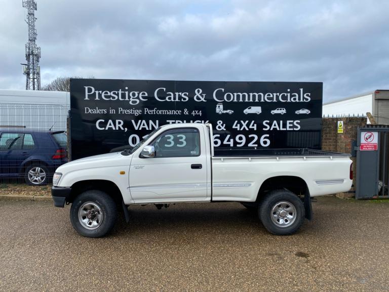 1999 TOYOTA HILUX MK4 2.4 TURBO DIESEL 4X4 SINGLE CAB. UK CAR NOT IMPORT. SELECTABLE 4X4. RARE TOYOTA ALLOYS IN CHROME FINISH. VERY ORIGINAL TRUCK. CURRENT MOT VALID TILL 29/05/2026, FULL 12 MONTHS MOT UPON SALE. LOTS OF NEW PARTS RECENTLY INCLUDING FULL FRONT END SUSPENSION, FULL SERVICE, NEW SUMP, ENGINE MOUNTS AND GEARBOX MOUNTS, FULL 3 PIECE CLUTCH KIT WITH NEW GEARBOX OIL. LOAD LINER PLASTIC TUB. HARD PLASTIC EASY CLEAN FLOORING TO CAB. TWIN BATTERY SET UP. FULL SIZE SPARE WHEEL. FIRST REGISTERED 01/01/1999. RARE TRUCK NOW. WORLDWIDE EXPORT ENQUIRIES WELCOME. SHIPPING ARRANGED. NATIONWIDE DELIVERY SERVICE AVAILABLE. MANY MANY MORE PICTURES ON OUR WEBSITE.