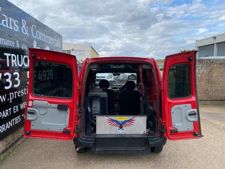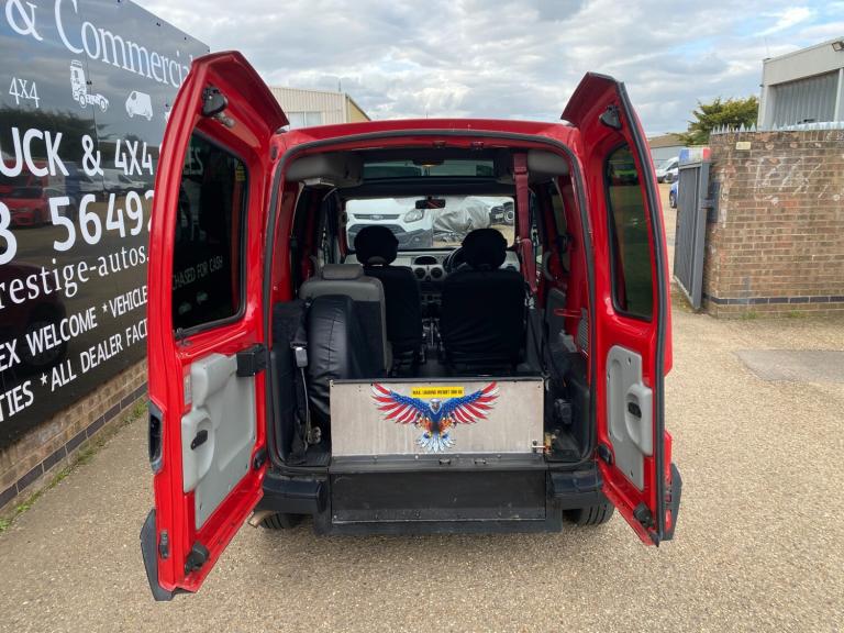 2005 55reg RENAULT KANGOO AUTHENTIQUE 1.6 16V 95 BHP PETROL ENGINE AUTOMATIC GEARBOX ULEZ LEZ CLEAN AIR ZONE COMPLIANT WHEELCHAIR ACCESSIBLE VEHICLE WITH FOLD DOWN LOADING RAMP AND AIR SUSPENSION TO REAR. SEAT BELT LASHINGS FOR WHEELCHAIR SECURING. PRIVATE REG PLATE INCLUDED WITH VEHICLE. FULL 12 MONTHS MOT UPON SALE. HAD FULL SERVICE, CAMBELT KIT AND GEARBOX OIL CHANGE AND 4 NEW TYRES 1400 MILES AGO. JUST HAD NEW BATTERY. VERY WELL MAINTAINED WITH GOOD SERVICE HISTORY. DRIVES SUPERB. AIR CON. 2 KEYS WITH REMOTE CENTRAL LOCKING. FRONT SUNROOF. SINGLE PASSENGER SEAT TO REAR. 12 MONTHS ROAD TAX PRICED £410. GOOD ECONOMY 25/35/44 MPG OFFICIAL FUEL ECONOMY FIGURES WHEN NEW. PRIVACY TINTED GLASS TO REAR. PERFECT DISABLED TRANSPORT WHEELCHAIR ACCESS VEHICLE OR VERSATILE FOR MANY OTHER USES, GREAT SMALL RUNAROUND VAN, MOTORBIKE/SCOOTER/KART TRANSPORT VEHICLE, MICRO CAMPER ETC. PLEASE VISIT DEALER WEBSITE FOR MANY MORE PICTURES. FOR ALL ENQUIRIES PLEASE CALL JIMMY AT PRESTIGE CARS AND COMMERCIALS LIMITED.