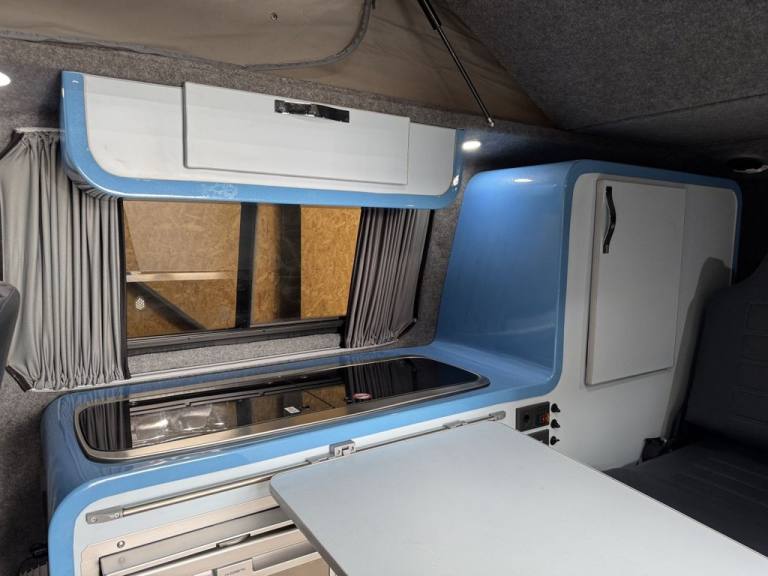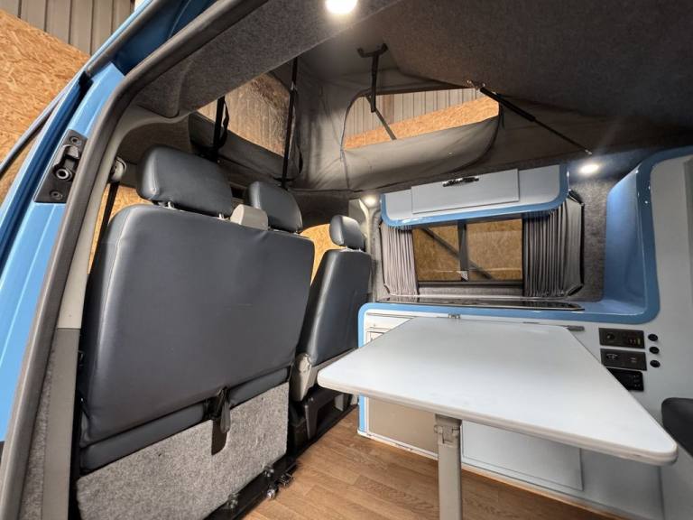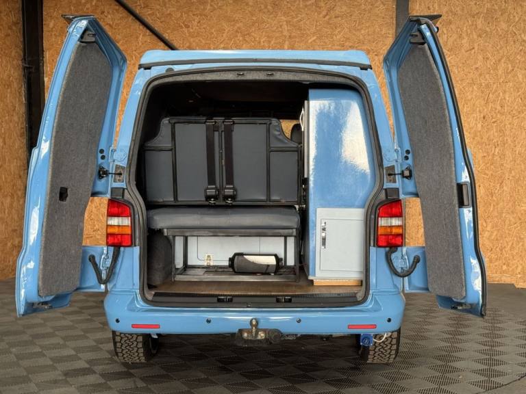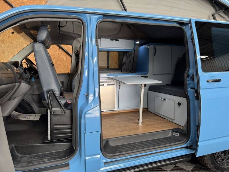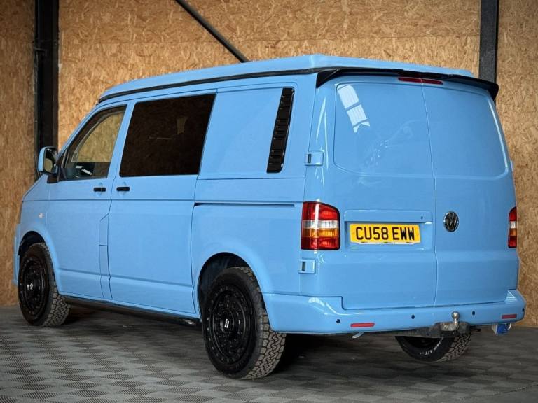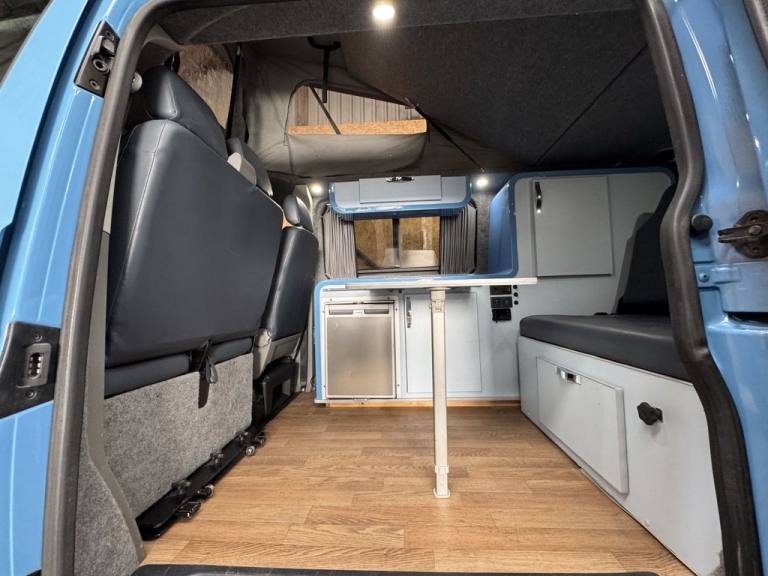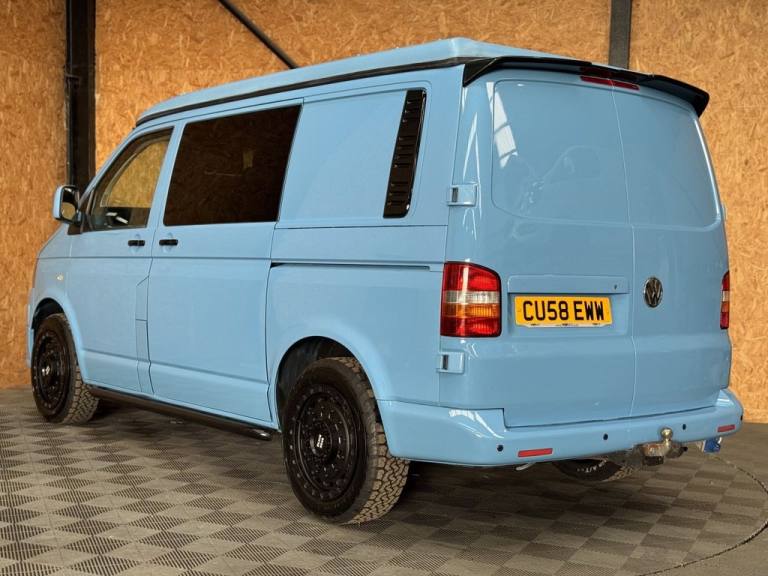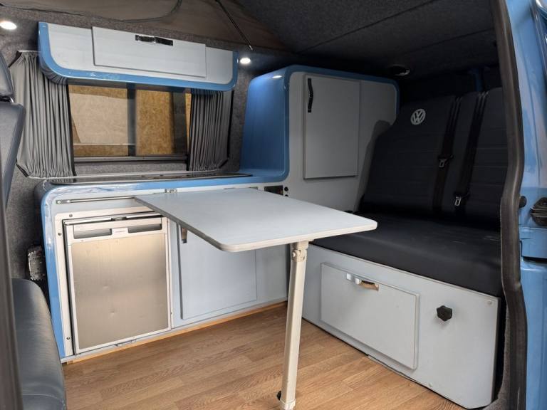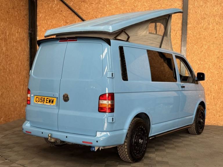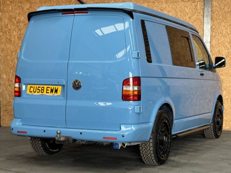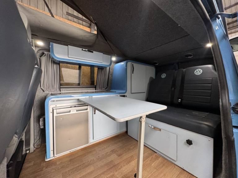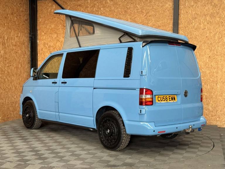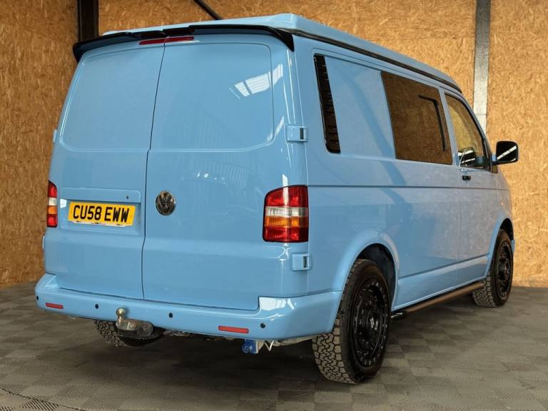 Fresh in to stock is this standout Volkswagen Camper van 1.9 TDI - Vehicle comes with a fresh MOT prior to sale/ Full specifications include: 18" Swamper wheels NEW A/T tyres - Gloss black grill & Sportline spoiler - Blue leather interior -Front double swivel seat - Pop top - Roller bed - Fridge - gas - Sink - Leisure battery - Electric charging sockets - Electric hook up - Storage cabinets - Awning - Stowable table - LED lighting & Much more. Full video walk through available at Vanza.co.uk ** READ OUR 5 STAR GOOGLE REVIEWS ** .Adjustable Steering Column/Wheel, Air Bag Driver, Air Bag Passenger, Anti-Lock Brakes, Ashtray/Lighter, Bumpers, Central Door Locking, Cigar Lighter, Clock, Cup Holder, Deadlocks, Doors - Sliding (Left), Electronic Brake Force Distribution, Head Restraints, Immobiliser, In Car Entertainment (Radio/CD), Mirrors External, Power Socket, Power-Assisted Steering, Rev Counter, Seat Belt Pre-Tensioners, Seat Height Adjustment, Seat Lumbar Support, Spare Wheel (Steel), Speakers, Steel Wheels, Sun Visor, Third Brake Light, Tinted Glass, Towing Equipment (Preparation), Traction Control System, Upholstery Cloth, Windscreen Wiper