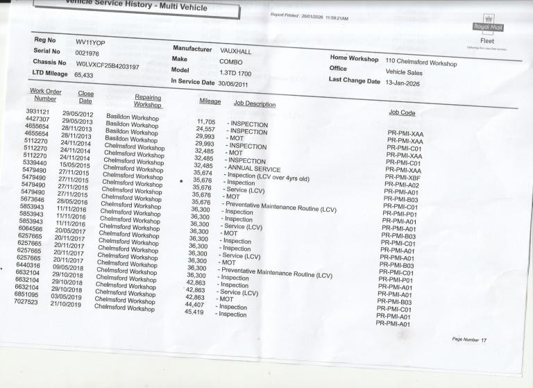 For sale is a 2011 Vauxhall Combo 1.3 CDTi 1700 16v Panel Van with a diesel engine, 65000 miles on the clock, and MOT valid until 06/06/2026. This reliable commercial vehicle comes with 2 seats in a single cab layout and 3 doors for easy access to the spacious panel van cargo area. With a gross weight of 1805kg, it's capable of carrying heavy loads while maintaining fuel efficiency at 134 g/km and 69 bhp. The interior is equipped with adjustable steering column/wheel, carpet, centre console, clock, and cup holder for added comfort and convenience. Don't miss out on this well-maintained panel van, perfect for businesses or individuals in need of a dependable workhorse. We welcome any inspection before you buy. Please visit us or take a look on our website at similar stock. We are located 10 minutes from M4/M5 with many quality vehicles to choose from. We offer full dealer facilities, low deposit finance, all debit cards accepted. Please call 0117 2050727 for out of hours response ON THIS VEHICLE please SMS or WhatsApp [Phone number removed] Features Include: , adjustable steering column/wheel, carpet, centre console, clock, cup holder, in car entertainment (radio/cassette), speakers, sun visor, tinted glass, upholstery cloth, air bag driver, anti-lock brakes, central door locking, deadlocks, electronic brake force distribution, head restraints, immobiliser, power-assisted steering, seat belt pre-tensioners, third brake light, bulkhead, external temperature display, load anchorage points, power socket, rev counter, mirrors external, side protection mouldings, spare wheel (full size), steel wheels, windscreen wiper