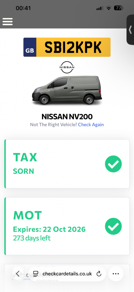 This vehicle has not been reported stolen, scrapped, exported or flagged as unroadworthy.