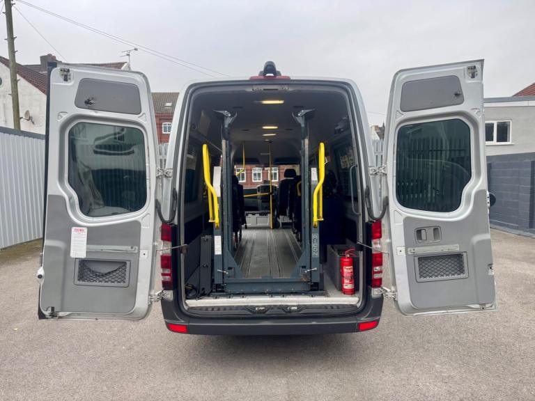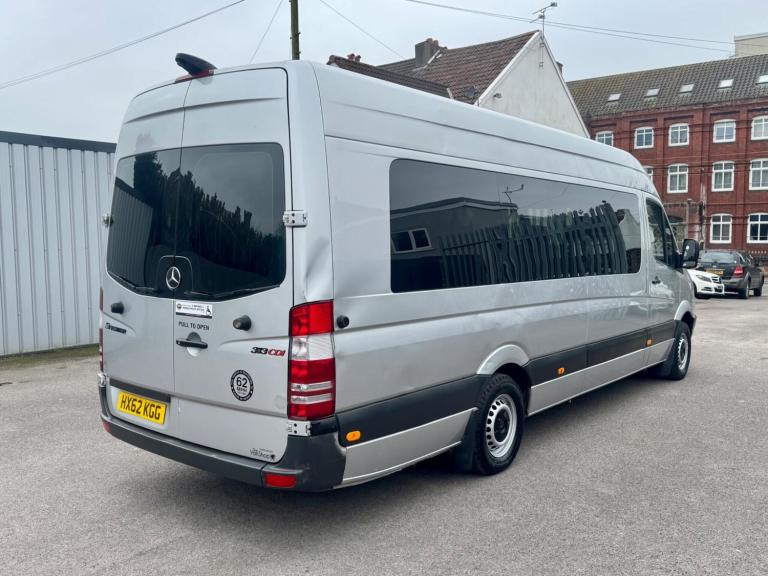2013 MERCEDES SPRINTER SPRINTER 313 XLWB MINIBUS 2.1 130 BHP ENGINE WITH 6 SPEED GEARBOX. 3.5 TON GROSS VEHICLE WEIGHT SO CAN BE DRIVEN ON A STANDARD DRIVING LICENCE. EXTRA LONG WHEEL BASE MODEL. ONLY ONE FORMER OWNER FROM NEW. JANUARY 2026 MOT (NEW MOT AVAILABLE). REGULARLY SERVICED AND INSPECTED. 2 KEYS. AIR CONDITIONING. CRUISE CONTROL. REAR DIESEL HEATER. REAR PRIVACY GLASS. RETRACTABLE SIDE STEP. SIDE SLIDING DOOR. TWIN REAR DOORS WITH 270 DEGREE HINGES. ADDITIONAL INTERNAL LIGHTING AND SPEAKERS. WHEELCHAIR LIFT (REMOVABLE). REAR SLIDING WINDOWS. REAR WIPERS. FM/AM/CD RADIO. STEERING WHEEL CONTROLS. ARM RESTS. CUP HOLDERS. INTERNAL STORAGE. MULTI TRIP COMPUTER. REMOTE CENTRAL LOCKING. PLUS MUCH MORE. NO VAT. HPI CLEAR. ALL VEHICLES UNDERGO A 100 POINT PDI WORKSHOP INSPECTION. NO ADMIN FEES! LOW RATE FINANCE AVAILABLE*. PART EXCHANGE WELCOME. NATIONWIDE DELIVERY AVAILABLE. ALL VIEWINGS ARE BY APPOINTMENT. AVAILABLE MOST DAYS UNTIL 8pm, IF YOU REQUIRE MORE INFORMATION OR WOULD LIKE TO ARRANGE A VIEWING OR HAVE A VIDEO OF THE MINIBUS SENT TO YOURSELF VIA WHATSAPP PLEASE CALL ON 01172795071 OR MESSAGE ON 07487322582**MANY COSMETIC IMPERFECTIONS, WALK AROUND VIDEO OF THE BUS AVAILABLE UPON REQUEST VIA WHATTSAPP**