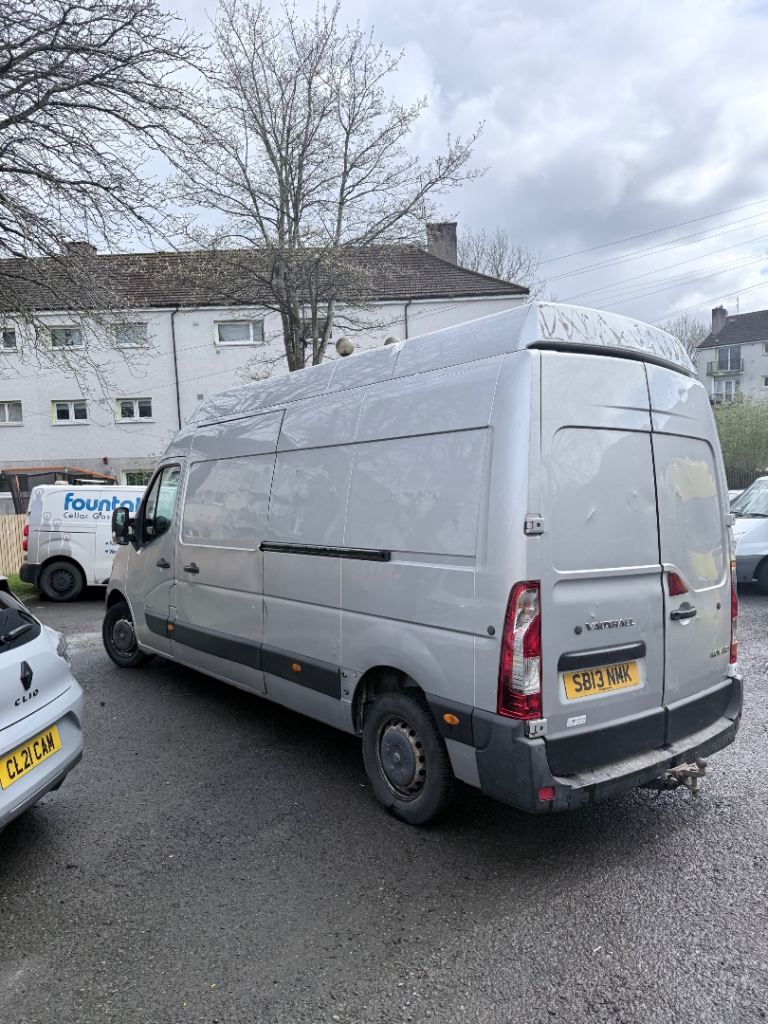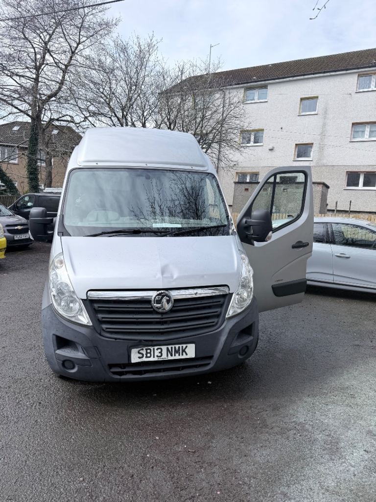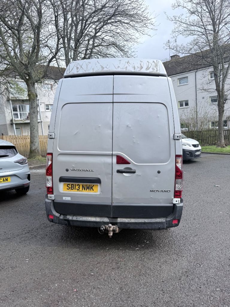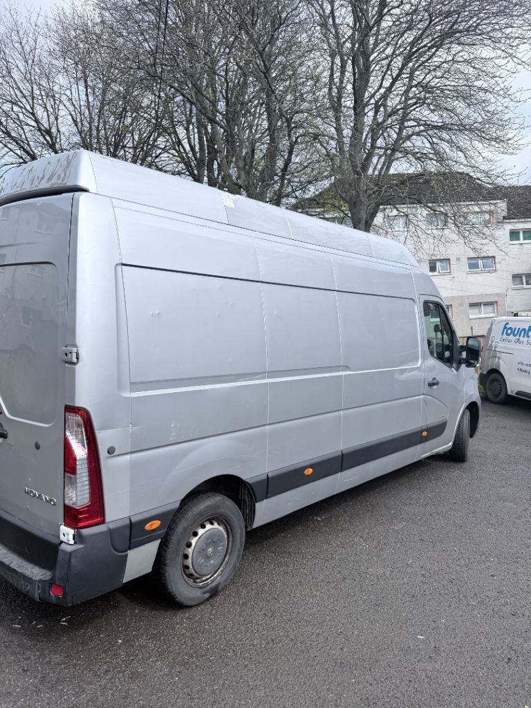 2013 Vauxhall Movano LWB H4 (extra high roof massive van), 122k miles. MOT until January 2027, just passed so ready to go. Long wheel base and high roof so loads of space in the back, ideal for work, removals or scrap. Comes with tow bar and ply lined rear. Manual gearbox.