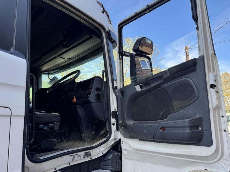 Fitted with Full Hydraulics, Air Deflector Kit, Twin Bunk Sleeper Cab, Rear Lift Axle, Air Conditioning, Electric Windows, Electric Mirrors, Sun Visor, Sun Roof, Heated Mirrors, Cyclist Aware Cameras, Cruise Control, Engine Brake, Multi-Function Steering Wheel, Radio, Digital Card Tacho, Euro 6, ULEZ Compliant, 926,000 kms.
