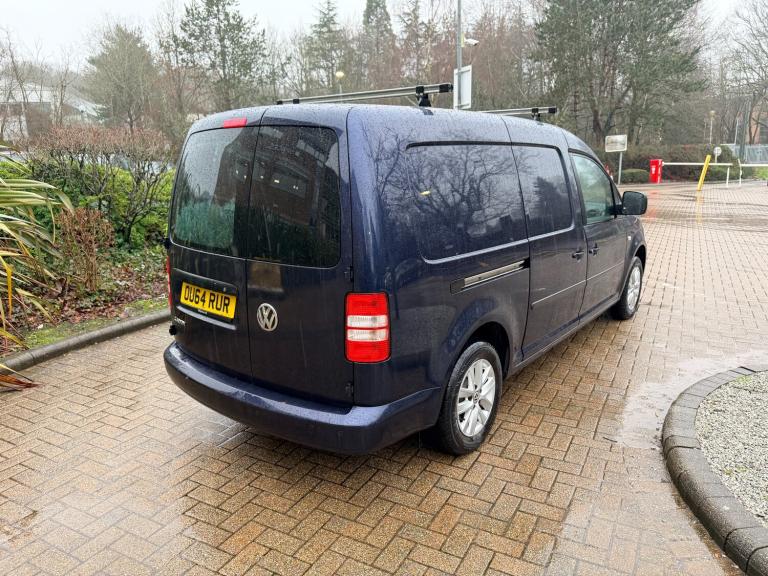 NO VAT! LWB MAXI CADDY, AUTOMATIC DSG, TWIN SLIDING DOORS, TWIN REAR DOORS, BULK HEAD AIR CONDITIONING, FULL BULK HEAD, ROOF BARS, STANDARD VAN NO MODIFICATIONS, FINANCE AVAILABLE! This 2014 Volkswagen Caddy Maxi 1.6 TDi C20 Maxi Highline Panel Van with 110000 miles is a reliable commercial vehicle perfect for transporting goods. It runs on diesel, has an MOT that expires on 06/08/2026, and a gross weight of 2328kg. The van features 2 seats in a single cab configuration with 5 doors, making it easily accessible for loading and unloading. The DSG FWD transmission and 101 bhp engine ensure smooth and efficient driving, while the 15in Kemora Alloy Wheels and 6J Kemora Alloy Wheels provide a sturdy foundation for heavy loads. Its interior includes a 12V socket in the dashboard, a tray cover, and six load-lashing rings to secure cargo. Whether for business or personal use, this panel van offers both practicality and performance for any transportation needs. BY APPOINTMENT ONLY! FINANCE AVILABLE! NO VAT! Features Include: , 12v socket in dashboard, dashboard with tray cover, six load - lashing rings, 15in kemora alloy wheels inc. locking wheel bolts, alloy wheels - 6j kemora and steel spare wheel, alloy wheels-15in kemora and steel spare wheel, body coloured bumpers, body coloured bumpers and wing mirrors, electrically adjustable and heated door mirrors, opaque asymmetric rear-wing doors, rear wing doors with opaque glass, sliding side doors on left and right, steel spare wheel, 4 speakers, air conditioning - climatic man. air conditioning, air conditioning-climatic manual, bluetooth - incl. multi-function display plus 1, bluetooth mobile phone connection, carpet flooring in cab, climatic air-conditioning, cruise control, cruise control system, digital clock, el. windows/el. heated and adjustable mirrors, electric front windows, four drinks holders, height adjustment for driver/passenger seat, height adjustment for front seats, leather gear knob and gaiter, leather steering wheel, rcd 310 radio/single cd, aux-in socket, rake and reach adjustable steering column, storage compartment in centre console, storage compartment under front seats, sun visor with vanity mirror, sun visors including vanity mirror w. cover, sun visors with vanity mirrors, trip computer w. multi function display plus, trip computer with multi - function display, upholstery - place cloth, alarm - thatcham cat 1, interior/tow away protect., alarm with interior and tow away protection,