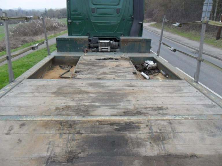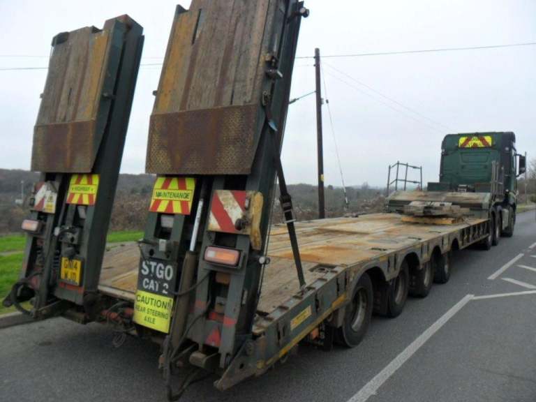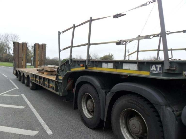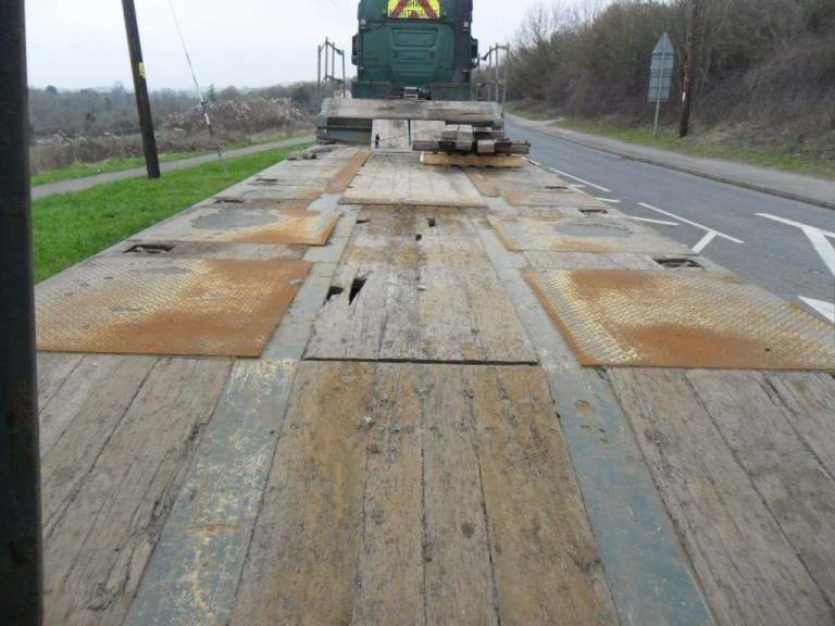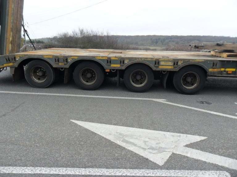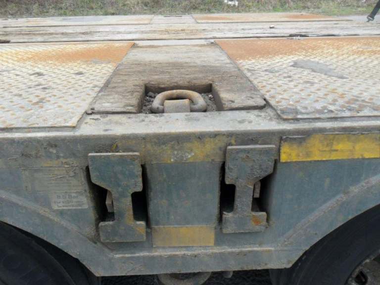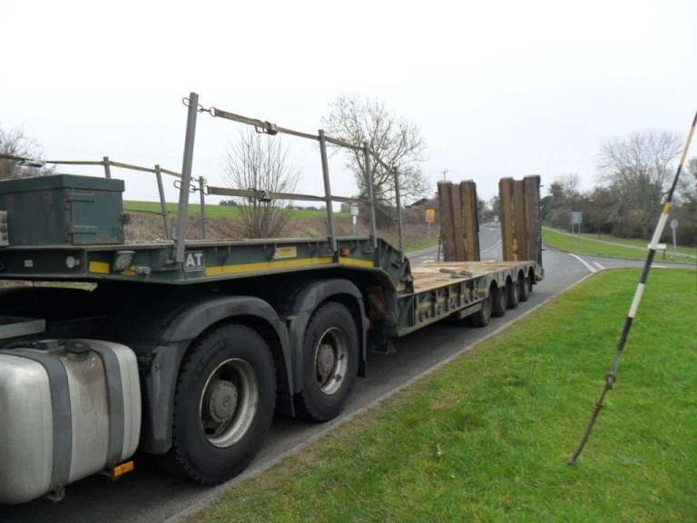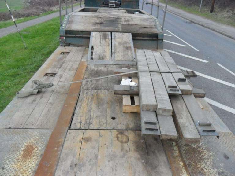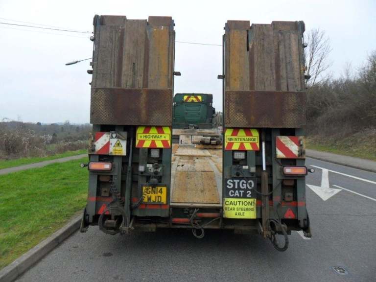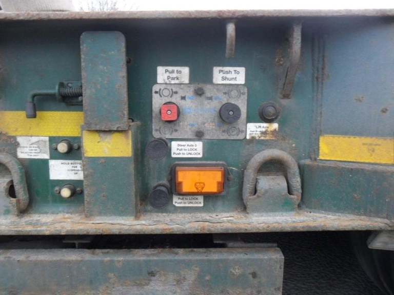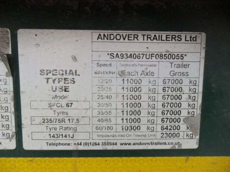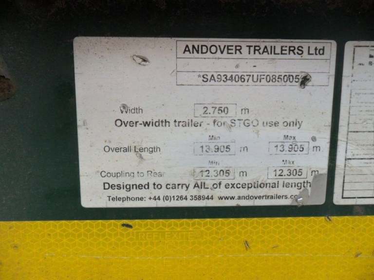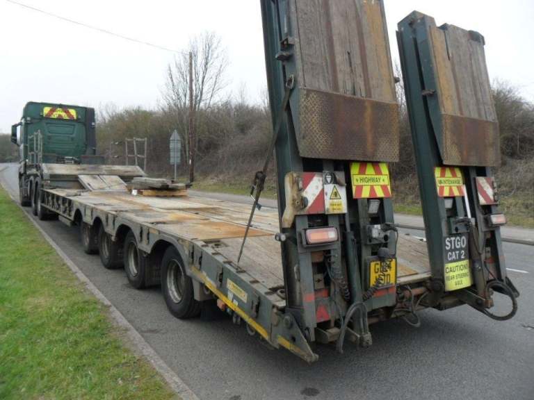 23 Tonne King Pin, 44 Tonne Bogie, 2.75 Metres Wide With Tapered Necks To 2540mm, Twin Steer and Twin Lift BPW Axle, Two Fixed And Two Self Tracking With Speed Lock On Axle 3, 6,000 Kgs Electric Winches With Remote and Radio Control, Steel Underlay To The Outer Bays, Hydraulic Power Toe Ramps With Hydraulic In And Out, Hydraulic Rear Steady Legs, Side Extensions, 12.305 Metre King Pin To Rear With 1.6 Metre Front Overhangs, Electric Powerpack, Steel Toolboxes Each Side Of Winch, Working At Height On The Neck With Platforms, 235-75 R17.5 Tyres, Wide Load Marker Boards And Amber Strobe Lights.