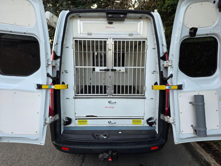 DOG UNIT, 2 LARGE DOG CAGES, ESCAPE HATCHES, AIR PAN, AIR FANS, AIRCON, STORAGE LOCKERS, SLIDING REAR DRAWS, NON SLIP FLOORING, REAR TABLE, REAR CHAIR, TWIN SIDE LOADING DOORS, REAR SAFE LOCKER, REAR BULIT IN WORK BENCH, OUT DOOR AWNING, 12V SOCKETS IN THE REAR, TOWBAR WITH ELECTRICS, 3 SEATS, BULKHEAD IN THE REAR, BLUETOOTH, USB, AUX, PARKING SENSORS AUTO LIGHTS 1 OWNER USED AS UNDERCOVER SPECIALIST DOG SELECTION VAN FULL SERVICE HISTORY 2015 FORD TRANSIT CUSTOM 2.2 TDCI HIGH ROOF SWB DRIVES VERY WELL GOOD TYRES GOOD ALL AROUND COND TOP SPEC VAN