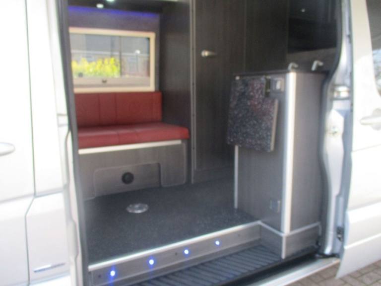 15/65 MERCEDES-BENZ SPRINTER 313 CDI RWD PROFESSIONALLY BUILT CAMPERVAN THIS VEHICLE HAS COVERED 60,000 MILES AND HAS BEEN PROFESSIONALLY CAMPER CONVERTED TO A VERY HIGH STANDARD, FEATURES INCLUDE RED LEATHER INTERIOR WITH EMBOSSED MERCEDES LOGO, PASSENGER SWIVEL SEAT, ON BOARD 4G WIFI, AERIAL BOOSTER, TRUMA NIGHT HEATER WITH DIGITAL CONTROL PAD, TRUMA WATER BOILER, FULL ALCANTARA INTERIOR, REAR DOUBLE BED WITH UNDER BED STORAGE CUPBOARD, SHOWER/TOILET ROOM, FITTED FRONT SCREEN BLINDS, REAR SLIDING BLINDS, SKYLIGHT, REAR ELECTRIC ROOF MOUNTED FAN, CENTRAL KITCHEN WITH 2 GAS HOB, FRIDGE WITH INTERNAL FREEZER COMPARTMENT, SINK AND MIXER TAP, PLUG SOCKETS FRONT AND REAR, SOLAR CHARGING SYSTEM, USB CHARGING POINTS, ON BOARD WATER TANK, OUTDOOR BBQ POINT (CADDOCK INCLUDED) 12V TV WALL MOUNTED, PRIVACY SIDE WINDOWS, FRONT BENCH SEAT CAN BE FOLDED OUT INTO BED, REAR GARAGE AREA WITH BUILT IN ELECTRIC SCOOTER CHARGING BOX (TWO ELECTRIC SCOOTERS INCLUDED) GAS BOTTLE, OUTSIDE TABLE, ELECTRIC HOOKUP, THULE OMNISTOR WIND OUT AWNING, LED OUTSIDE AWNING LIGHTS, REVERSE PARKING CAMERA, UPGRADED FRONT BUMPER WITH LED DAYTIME RUNNING LIGHTS, ALLOY WHEELS, AIR CON, TRIP COMPUTER, ADJUSTABLE STEERING COLUMN, ELECTRIC WINDOWS, UPGRADED STEREO WITH BLUETOOTH, SAT NAV, CRUISE CONTROL, 2 KEYS, REMOTE CENTRAL LOCKING, WILL COME WITH A NEW MOT £49,995 ALL VEHICLES COME WITH, NEW OR LONG MOT MULTI POINT CHECK SUPPLIED WITH A WARRANTY Any Viewing AA Or RAC Inspection Welcome CREDIT/DEBIT CARDS WELCOME RHONDDA MOTOR COMPANY LTD NORTH ROAD PORTH CF39 9SH RHONDDA MOTOR COMPANY LTD THE FIRE STATION PORTH CF39 9SP.ASSYST - Flexible servicing system, Cruise control and variable speed limiter, Digital clock, PAS, Rev counter, Trip computer, Immobiliser, Remote central locking, 2 speakers, 2 sunvisors plus shaded windscreen centre, 4 cupholders, A4 oddments tray on centre of dash, Ashtray, Cab headlining, Cigarette lighter, Compartment under fold-up passenger seat, Door mounted armrests, Front door pockets with bottle holder, Grab handle at right hand door pillar, Heater and demister, Interior shelf above windscreen, Load area light, Load lashing rings, Locking glovebox, Map reading lamp, Multi function steering wheel, Passenger grab handle, Recirculating air switch and 4 speed fan, Shelves to left and right on instrument panel, 2 large exterior rear view mirrors with seperate wide angle lenses, Adaptive brake lights, Daytime running lights, Electric front windows, Intermittent front wash/wipe, 3 point inertia reel belt on all seats, Drivers airbag with belt tensioner and belt force limiter, ABS, ASR traction control, Brake assist, EBD, ESP, Particulate filter (DPF), Uprated 95Ah battery