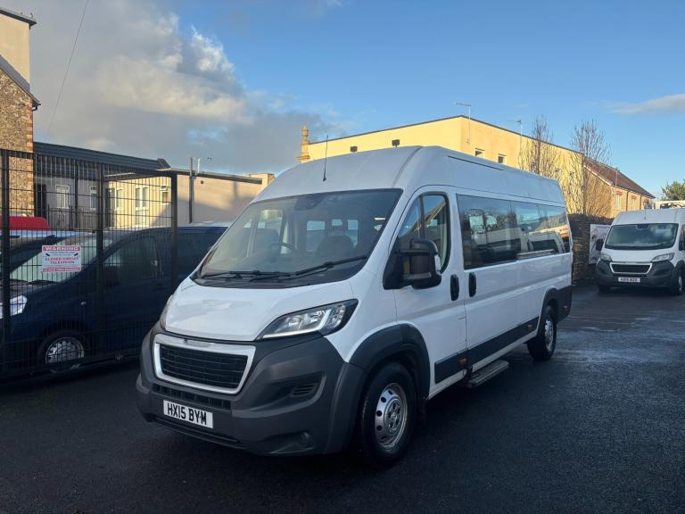 PSV MOT AVAILABLE DISABLED REAR RAMP THE MINIBUS LITE CAN BE DRIVEN ON A CAR LICENCE.MOST MINIBUSES REQUIRE THE DRIVER TO HAVE D1 ENTITLEMENT ON THEIR LICENCE, BUT THE LIGHTWEIGHT MINIBUS IS A PEUGEOT VALIDATED CONVERSION ONE OF ONLY TWO IN THE UK AND IS THE ONLY MINIBUS NOT REQUIRING A D1 LICENCE TO BE EC WHOLE VEHICLE TYPE APPROVED ONE OWNER FROM NEW WE PRIDE OURSELVES ON THE QUALITY OF OUR VEHICLES REMOTE CENTRAL LOCKING 2 KEYS ELECTRIC WINDOWS USB AUX AIR BAG HANDS FREE READY TO WORK, FINANCE THIS VEHICLE TODAY AND DRIVE AWAY THE SAME DAY. ALL VEHICLES COME WITH BRAND NEW 12 MONTHS MOT AND FULLY SERVICED WITH 3 MONTHS NO QUIBBLE GUARANTEE. WHEN PURCHASING YOUR NEW VEHICLE BUY WITH CONFIDENCE AND DON'T TAKE OUR WORD FOR IT JUST READ OUR 5 ***** GOOGLE REVIEWS ALL MINIBUSES ( SUBJECT TO AGE ) CAN BE SUPPLIED READY TO WORK WITH COIF CERTIFICATES, PSV TESTED AND TACHOGRAPHS AT COMPETITIVE RATES. DELIVERY CAN BE ARRANGED AT COST OR PICK UP FROM BRISTOL AIRPORT OR TRAIN STATIONThis 2015 Peugeot Boxer presents an exceptional ownership history, having been meticulously maintained by just one owner from new. This well cared for L4 H2 panel van is equipped with a robust 2.2 litre HDi diesel engine, delivering a capable 130 brake horsepower. Its 440 variant designation signifies its substantial load carrying potential, making it a practical choice for a variety of commercial needs.The 2.2 HDi 440 FWD derivative offers a strong blend of performance and efficiency, with its 130 bhp engine providing ample power for daily operations. This single owner vehicle demonstrates a commitment to upkeep, suggesting a well preserved example. The Boxer's spacious interior and reliable diesel engine make it a dependable workhorse, ready to meet the demands of your business.