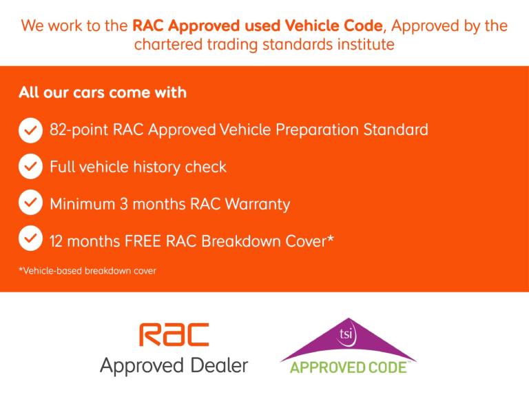 RAC APPROVED DEALER - Retail Vehicles ALL come with a Comprehensive 3 months warranty and 12 months breakdown cover which you are able to extend up 36 months.