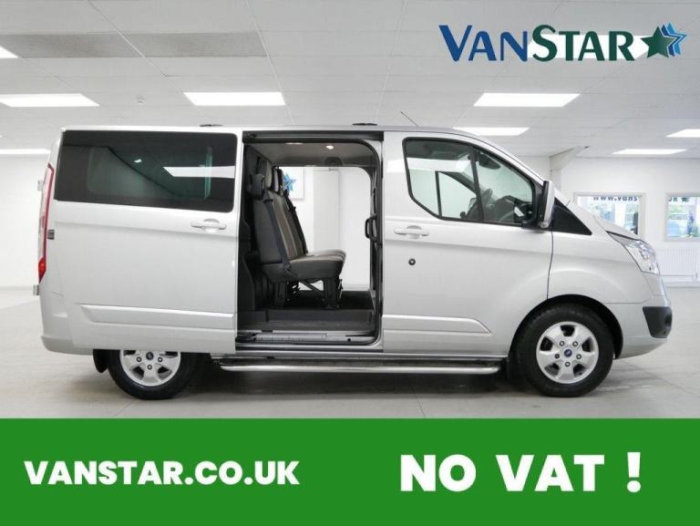 NO VAT ! .. 2015 Plate Ford Transit Custom 290 2.2 TDCI 155 BHP Short Wheelbase Limited Edition Crewcab 6 Seater .. High Spec No VAT Example in Moondust Silver with Air Con , Alloys , FACTORY SAT NAV MEDIA , FULL CREAM LEATHER INTERIOR , 6 SEATER CREWCAB , TWIN SIDE ACCESS DOORS - 6 DOOR SPEC , HEATED SEATS , TOW PACK , Electric Windows + Mirrors , Power Folding Mirrors , Privacy Glass , Limiter + Cruise Control , Bluetooth , DAB Radio , Park Sensors , Reverse Camera , Side Steps , Cargo Lined , Bulkhead , Plus all usual styling and refinements found in the Higher Spec Limited Edition models .. Just 70000 Miles , 3 x Service Stamps ! .. Best of all , No VAT To Pay !, OVER 600 VANS IN STOCK ! , OPEN 7 DAYS ! , VANSTAR IS YORKSHIRE#039;S LARGEST VAN CHOICE , WE SPECIALISE IN NO VAT VANS , EURO 6 VANS , CREWCAB - KOMBI VANS and TIPPERS and LUTONS ! .