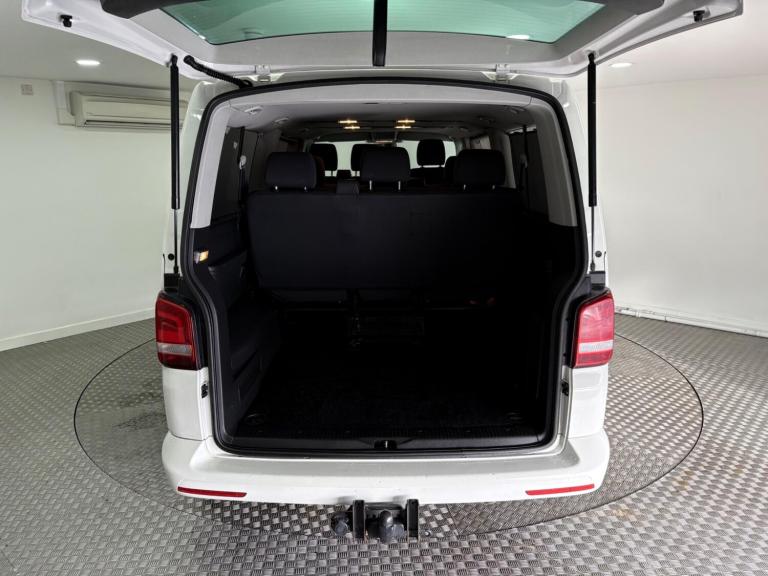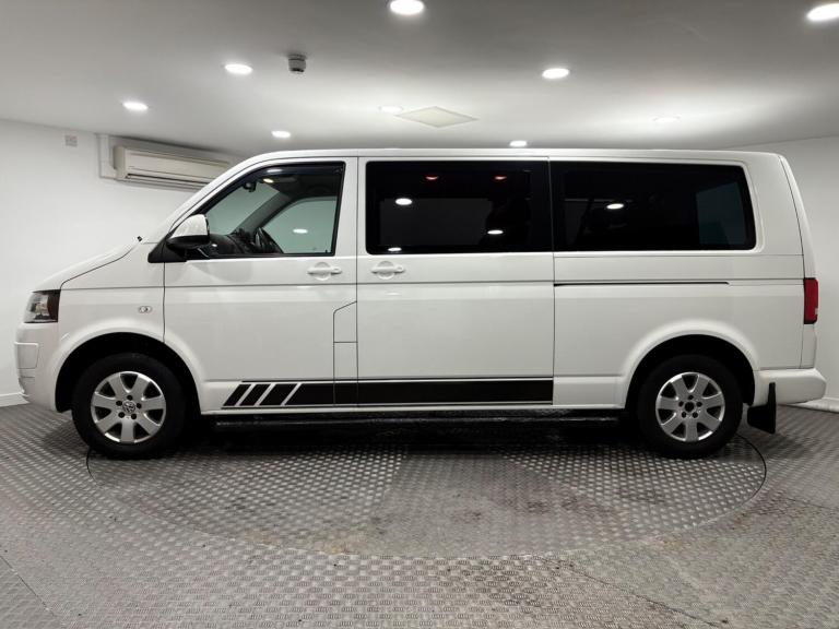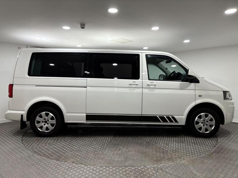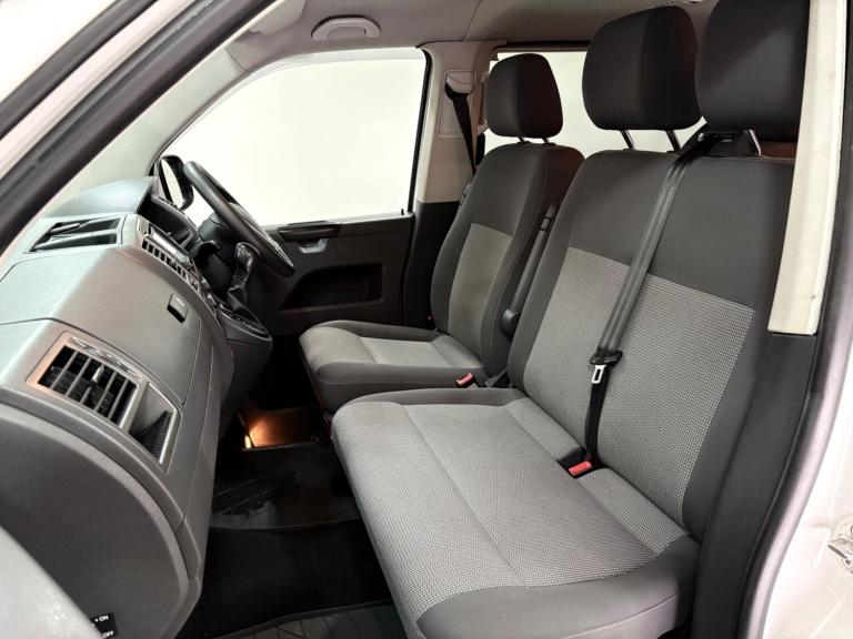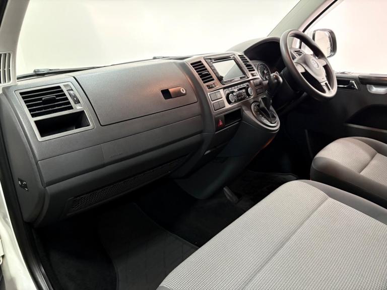 This 9 seat Transporter Shuttle has been serviced on 7 occasions and has had the cam belt changed at 105k miles, supplied with 2 keys and has MOT valid until November 2026, offering you peace of mind for the road ahead. Finished in white with grey cloth interior. This T30 SE derivative is powered by a robust 2.0 litre diesel engine, delivering a capable 138 brake horsepower. The smooth DSG automatic transmission ensures a comfortable driving experience, making it an ideal choice for a variety of needs. Features include a tow bar, privacy glass, satellite navigation, DAB radio, running boards.The 2.0 TD T30 SE DSG L3 H1 4dr model is designed for practicality and efficiency. Its strong engine performance, highlighted by the 138 bhp output, indicates a superior driving dynamic compared to many other vehicles in its class. This Volkswagen Transporter Shuttle is a reliable and well maintained option, ready for its next journey.