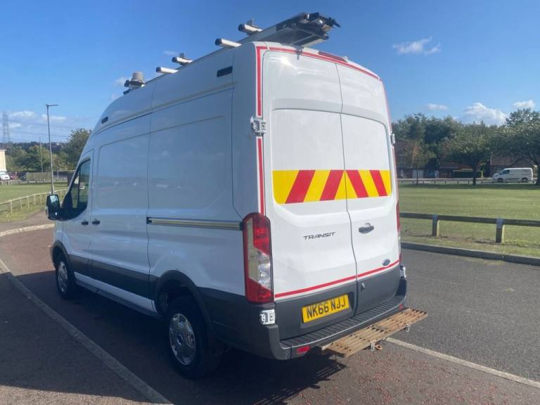 (66) Ford Transit T350 L H3 Rwd 2.0 Diesel Euro 6 (130 ps ) in white 1 company owner direct from british telecom 107,000 miles with service history front and rear parking sensors front fog lights , Bristor racking fitted in the rear with work bench and and shelving with 240 invertor diesel heater hand wash work lights roof rack just off service ready to go straight back to work sold with new mot full service and warranty @ screen price. £8995 NO VAT Tel 01429 824444 [Phone number removed] All usual dealer facilities available, Finance Arranged. All major Credit/Debit cards accepted..16in Steel Wheels, 8-Way Driver Seat with Fore-Aft - Recline -Height and Tilt, Airbags - Driver, Anti-Lock Braking System - ABS with Electronic Brake Force Distribution - EBD, Armrest - Drivers, B Pillar Assist Handle, Bottle Holder - 2x Facia-Mounted, Bulkhead - Full Steel, Bumper - Front Body Colour - Partial, Cab Floor Covering - Rubber, Courtesy Light - Overhead with Theatre-Style Dimming, Curve Control, Daytime Running Lamps, Dead-Lock, Door Handles - Self Coloured, Door Mirrors - Manual Adjust, Doors - Passengers Sliding Side Load Door and Step, Driver Seat Belt Minder, EBA - Emergency Brake Assist, EDCC - Electronic Dynamic Cornering Control, Electric Windows - Front with One Touch Lowering Drivers, Emergency Brake Warning, ESC - Electronic Stability Control, Ford Connected Audio System, Ford Easy-Fuel Capless Refuelling System, Ford Eco Mode - Driver Information System, Front Seats - Seat Back Tray Tables, Gearshift Indicator Light, Glovebox with A4 File Storage, Headlining - Cab - Moulded, Hill Start Assist, Immobiliser - Safeguard Passive Anti-Theft System - PATS - Insurance-Approved Category 2 Immobiliser, LAC - Load Adaptive Control, Less Easy Clean Floor, Less Spare Wheel, Load Compartment - Tie Down Loops x8, Loadspace Compartment Light, Locks - Audio Mis-Lock Feedback, Locks - Configurable Unlocking, Locks - Key Operated Bonnet Release, Mud Flaps - Rear, Overhead Storage Shelf, Power Steering, Rear Step - Integrated in Bumper, Recirculation Heater - Front, Remote Central Locking, ROM - Roll Over Mitigation, Seats - Dual Passenger, Side Wind Mitigation, Standard Duty Alternator - 150amp, Steering Column - Rake and Reach Adjustment, Steering Wheel - 4 Spoke PU, Storage - Drivers Side - Storage Compartment on Facia Top with Lift Up Lid, Storage - Front Door Map Pockets, Stowage Box - Front Passenger Underseat Area, Traction Control - TC, Trip Computer, TVC - Torque Vectoring Control, Two 12V Power Socket, Tyre Inflator Kit, Wheel Covers - Half Caps, Wide Bodyside Mouldings, Wipers - Front Variable Intermittent