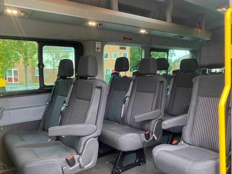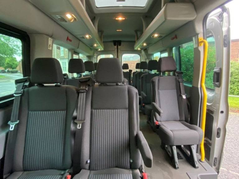 FORD TRANSIT 460 2.2 TDCI 125 Bhp L4 H3 TREND 17 Seater MINIBUS DRW TACHOGRAPH, Stunning example throughout Moondust Silver (Metallic) Direct to ourselves from Major leasing company fully documented service history printout No expense spared, Mega specification Overhead Storage, Dual Air Conditioning Zoned front and rear, Cruise Control, front and rear Parking Sensors, Radio-CD Player, Bluetooth, Auto Headlights, Front Fogs, Electric Mirrors & Windows, Driver assistance system: lane assist with drowsiness detection sensor, Ready for Work, WE HAVE CHOICE OF MINIBUSES IN STOCK !! [ Getting Hard To Find ..or its Twin !! ] ......... All our vehicles are prepared to the highest standards, Pre-Delivery inspection, Mot / Oil & filter if required, RAC warranty available on all vans. Full dealer facilities Low rate finance available, Also offer Free UK Delivery T&C Apply please check with our team. [ We are family owned and run since 1992 ] + VAT We only got bigger by been better- Leaders not followers, Every effort has been made to ensure the accuracy of the above information but errors may occur. Please check with our team, Telephone 01325 256060 / 488121 or email us on [Email address removed. Click Email button to contact us.]" steel wheels, 2nd remote key, ABS, Audio controls mounted on steering wheel, Blind spot eliminator, Cloth upholstery, Driver seatbelt reminder, Drivers seat armrest, Dual front passenger seat, Electric front windows, Electrically folding and heated door mirrors, Electronic dynamic cornering control, ESP + EBA, Front and rear parking sensors, Front fog lights, Full size spare wheel, Glovebox (A4 documents size), Heated windscreen, Height and reach adjustable steering wheel, Hill start assist, Lane keeping alert with driver alert, Locking glovebox, PAS, Privacy glass, Rain sensitive wipers and auto headlights, Rear bumper with integral step, Rear mudflaps, Reclinable rear seats with armrests, Remote central locking, Silver front grille, Static cornering lights, Tool kit, Trip computer, Wide bodyside mouldings