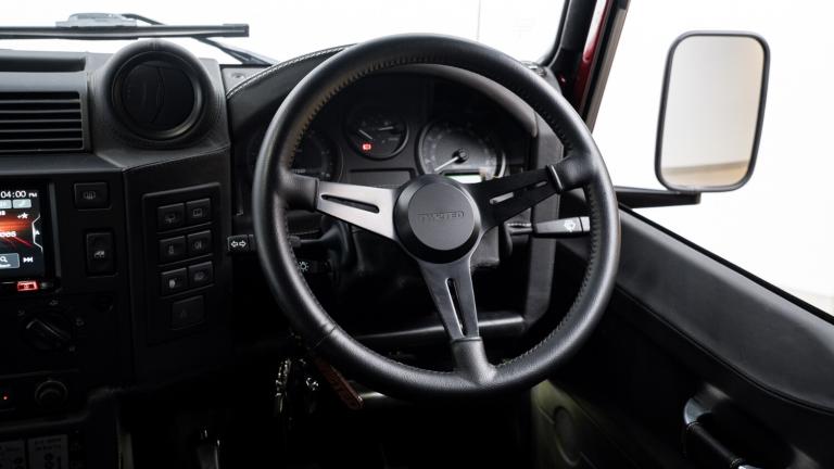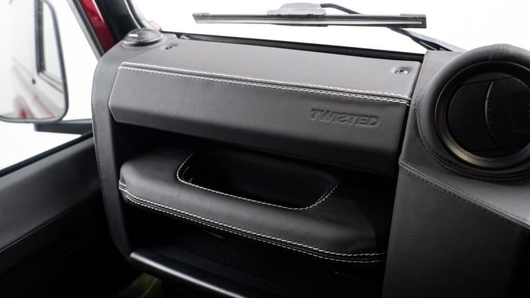 ..[Optional Extra] Montalcino Red Metallic, [Optional Extra] Twisted P6 performance package ECU reprogramme, air filter and stainless exhaust, [Optional Extra] Twisted progressive suspension, [Optional Extra] 4 pot performance front and rear brakes, [Optional Extra] Full bulkhead removal with strengthening bar, [Optional Extra] Internal soundproofing and body sealing, [Optional Extra]Premium grade black carpet throughout, [Optional Extra] Twisted binnacle dials and clock face, [[Optional Extra] Twisted 8 channel audio installation, [Optional Extra] Double DIN infotainment with CarPlay, Nav, DAB & Reverse Camera, [Optional Extra] LED Downlighting, [Optional Extra] Hard wired battery tender point,[Optional Extra]Controlled tail door opening, [Optional Extra] Soft touch finish to binnacle dials, blower rings and dashboard end vents, [Optional Extra] Soft touch finish to centre dash panel and ancillary switch panel, [Optional Extra] Twisted 14 classic steering wheel in black with slimline boss, [Optional Extra]Twisted leather trimmed heated Recaro seats with removable seat bases, [Optional Extra] Leather trimming to cubby box with raised lid conversion, [Optional Extra] Leather trimming to complete dashboard, [Optional Extra] Leather trimming to front door cards, [Optional Extra] Leather trimming to tail door card, [Optional Extra] Alcantara trimmed hard top side panels, [Optional Extra] Alcantara trimmed headlining and sun visors, [Optional Extra] Aluminum door handles with leather trimming detail, [Optional Extra] Heritage gear and differential lever, [Optional Extra] Privacy glass from B pillar back, [Optional Extra] Spray protection to chassis and axle casings, [Optional Extra] Twisted steering guard, [Optional Extra Twisted bumper with DRL and high output driving lights, [Optional Extra] Stainless body bots throughout, [Optional Extra] Twisted wing levelling, [Optional Extra] Stage one front end conversion with grille and vent set in satin black, [Optional Extra] LED headlight and side light conversion, [Optional Extra] Chequer plate to wing tops in satin black, [Optional Extra] Billet aluminium window blocks colour coded in Montalcino red, [Optional Extra] Upgraded wiper blades, [Optional Extra] Twisted Defined hip stripe in satin black, [Optional Extra]Colour coded mirror backs in Montalcino red, [Optional Extra] Twisted 18 Classic alloy wheels in satin black, [Optional Extra] Satin black wheel nuts, [Optional Extra] B F Goodrich tyres, [Optional
