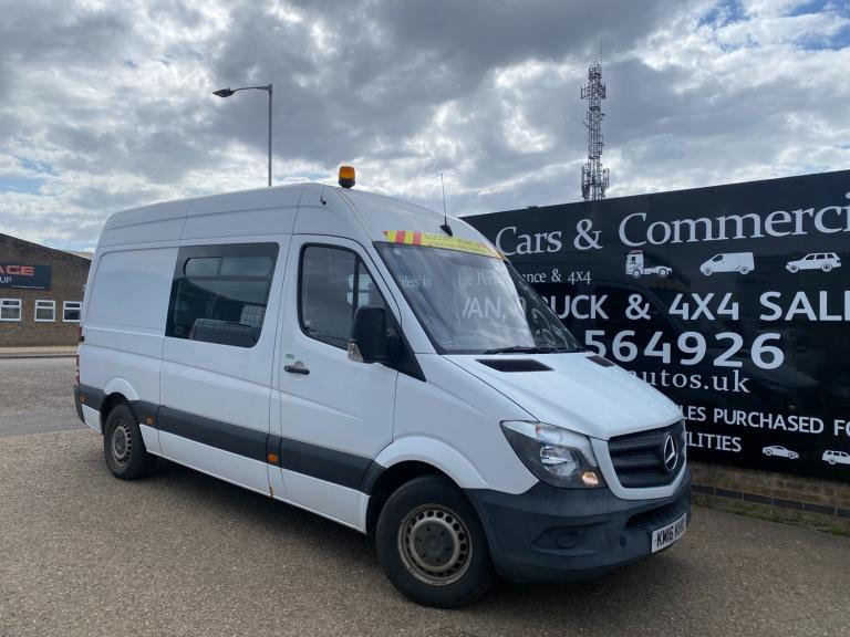 2016 16 REG MERCEDES SPRINTER 313 CREW VAN 9 SEATER MPV SPLITTER VAN MINIBUS COVERED 108028 GENUINE MILES. NICE EXAMPLE 3.5 TONNE MWB NON AD BLUE ULEZ+LEZ CLEAN AIR ZONE COMPLIANT LEGENDARY SPRINTER MWB MEDIUM WHEEL BASE HI ROOF PANEL VAN. 2.1 CDI 130 BHP TURBO DIESEL WITH 6 SPEED GEARBOX. 1 COUNCIL OWNER FROM NEW WITH SERVICE HISTORY. BEEN INSPECTED EVERY 6 WEEKS SO MAINTAINED WITH NO EXPENSE SPARED, SUPERBLY MAINTAINED AND LOOKED AFTER HENCE DRIVES BEAUTIFULLY. CURRENT MOT VALID TILL 23/10/2026 WITH NO ADVISORIES, FULL 12 MONTHS MOT UPON SALE. LAST SERVICED AT 106668 MILES. 6 MONTHS NATIONWIDE PARTS AND LABOUR WARRANTY. SPLIT REAR LOAD AREA WITH SHELVING STORAGE UNIT. CREW AREA LED LIGHTING. OPENING VENT SUNROOF. OPENING SIDE VENT WINDOWS. CRUISE CONTROL. REAR LOAD AREA STORAGE SHELVING. BLUETOOTH TELEPHONE+AUDIO INTEGRATION. USB AUX IN MUSIC INTERFACE. DAYTIME RUNNING LIGHTS. ADAPTIVE BRAKE LIGHTS. SUPERB ECONOMY, BEST IN CLASS. HILL START ASSIST. CROSSWIND ASSIST. SHIFT POINT INDICATOR. OVERHEAD STORAGE ABOVE CAB. UNDERSEAT STORAGE. CUP HOLDERS. SIDE MARKER LIGHTS. SIDE LOADING DOOR. TWIN REAR DOORS WITH 270 DEGREE WRAPAROUND OPENING. 3.665 METRE WHEELBASE. 3500 KG GROSS VEHICLE WEIGHT. 2261KG UNLADEN WEIGHT. 2800KG TRAILER PULL CAPACITY. 6300KG TRAIN WEIGHT. 72MPH SPEED LIMITER (CAN BE REMOVED BY US IF REQUIRED). PERFECT BASE VEHICLE FOR CAMPER DAY LESIURE VAN CONVERSION. VAN HAS JUST ARRIVED, WILL BE GIVEN FULL VALET AND NEW TO SET OF PICS TO FOLLOW. CHOICE OF HAND PICKED QUALITY USED VANS IN STOCK NOW. CHOICE OF MERCEDES SPRINTERS ALWAYS IN STOCK.