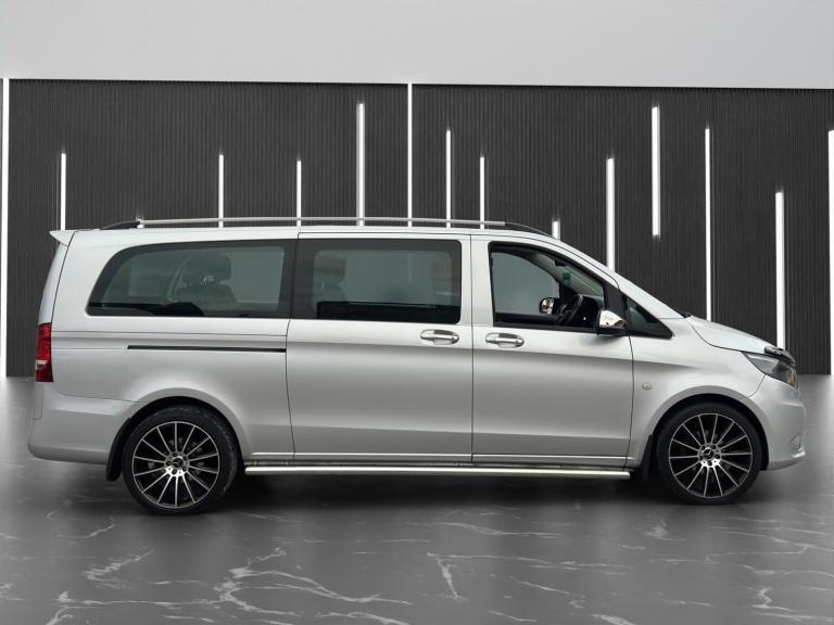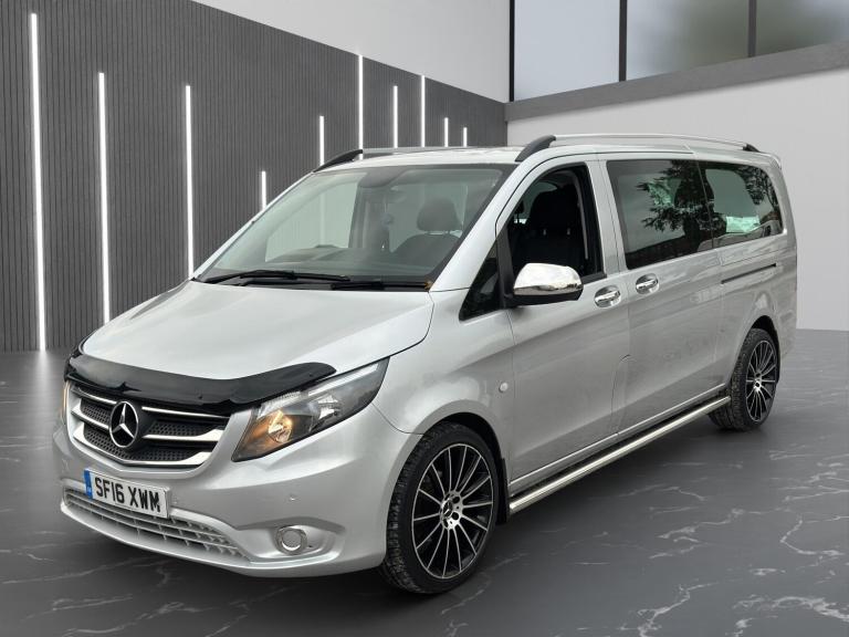 Nice example of a 9 seater Vito only 37,000 miles from new, just serviced, MOT July 2026, cruise control, 9 seats, metallic silver paintwork, alloy wheels, chrome side steps, roof rails, rear spoiler, front spoiler, mudflaps, exterior chrome pack, very rare extra long wheel base model, fantastic condition, starts and drives brilliant…EURO 6 and ULEZ compliant…NO VAT…NO VAT…NO VAT
