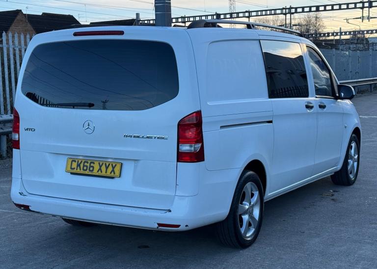 MERCEDES-BENZ VITO 114 CDI Crew Van 5 Seats 2.1 CDI Manual Diesel Registration: CK66 XYX Year: 2016 Mileage: 157,000 miles Colour: White Owners: 2 MOT Expiry: 19/09/2026 Price: £8,495 Well presented Mercedes-Benz Vito 114 CDI Crew Van finished in white, 5 seats, 2.1 CDI diesel engine with manual gearbox. This is the 114 model offering a strong balance of power and economy, ideal for business or mixed use. Just had a full service completed and drives very well. Long MOT until September 2026. HPI clear and history checked. Specification includes: Bluetooth connectivity Cruise control Automatic headlights 5 seat crew configuration Twin side loading doors Electric windows Remote central locking Steel wheels Spare wheel Proven and reliable 2.1 CDI engine. Clean example for the mileage. Ready for work immediately. Part exchange welcome. Nationwide delivery available.