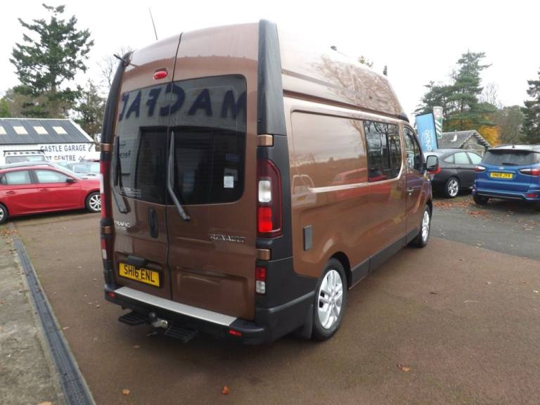 Embark on your next adventure with this Renault Trafic High Roof Campervan, beautifully converted and fully equipped for a comfortable and stylish road trip experience. Investing in a Trafic campervan offers the perfect blend of practicality, comfort, and adventure. With its impressive power and handling, the Trafic is an excellent base for a camper conversion . Its spacious interior is thoughtfully designed, offering plenty of room for essentials like a sleeping area, kitchen, and storage without feeling cramped. The vans size and smooth handling make it ideal for navigating narrow roads and parking in tighter spaces, when compared with a motorhome. With a Renault Trafic campervan, youre not just buying a vehicle; youre investing in a versatile and flexible way to explore the world on your terms, whether its weekend getaways or extended road trips. The vehicle comes with Pull down bed Captains chairs Cooker hob with plumbed water Diesel heater Toilet Ample storage Towbar Leisure battery Vehicle prepared in our onsite fully equipped workshop and MOT Station and will come with a fresh mot, full service and 6-month extendable warranty. Contact us today to arrange a viewing or ask any questions..12V Power Socket - Front, 16in Steel Wheels with Large Wheel Stylers, ABS - Anti Lock Brakes, Airbags - Driver, Alarm - Pre-Wiring, Anchorage Points x18, Armrest - Driver, AUX Input, Bluetooth, Bulkhead - Full Steel, Closed Lid Glovebox - Not Lockable, DAB Radio, Deadlocking, Door Mirrors - Electrically Adjustable - Manual Folding and Heated, Door Mirrors - External Temperature Sensor, EBD - Electronic Brake Distribution, Electric Windows - Front, Electronic Engine Immobiliser, ESC - Electronic Stability Control, Fuel Computer - Multifunctional, Gear Change Indicator, Grip X-Tend, HSA - Hill Start Assist, Left Side Loading Door - Unglazed, NO MediaNav or Renault R-Link 7in Touch Screen Satellite Navigation, Passenger Bench Seat, Power Assisted Steering, Rear Doors - 180 Degree Solid, Remote Central Locking, Roof Bars Fixings, Seats - Drivers Height Adjustment, Seats - Drivers Lumbar Adjustment, Spare Wheel with Anti-Theft Spare Wheel Holder, Speakers x2 - 15W, Steering Wheel - Height and Reach Adjustable, USB Connection