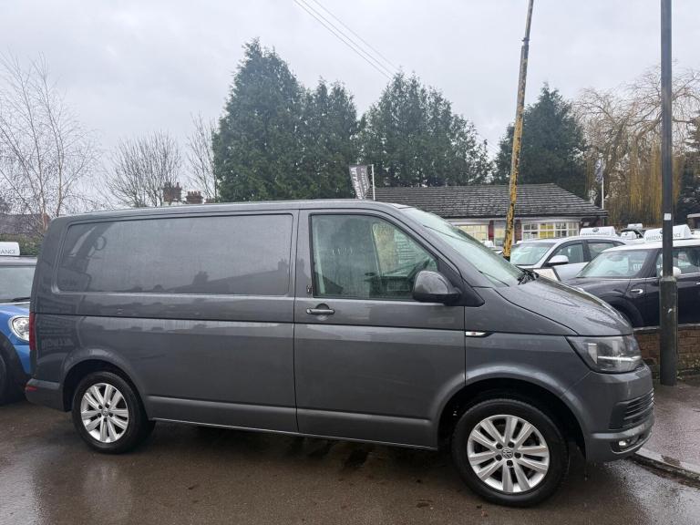 Allwood of Sandridge commercial division are very pleased to being to market this excellent driving and good all round condition one owner from new high spec'd Transporter 2.0 TDI T28 BlueMotion Tech Highline FWD SWB edition. We a lovely service record from VW main dealer for the fist 3 years followed by the same specialist independent there after the vehicle is also being serviced at its current miles giving you 9 services, a new MOT has just been added running right through till 1 January 2027 and for yet further peace of mind is free from advisories any any recommendations of work. A clutch and flywheel was replaced at 60,000. Only ever used lightly this Tech Highline come with a great level of spec, in lovely dark grey metallic paintwork with alloy wheels, parking sensors front and rear with on screen display, wide screen entertainment system, USB inputs, body coloured bumpers, cruise control, heated front screen and mirrors, fully ply lined, security deadlocks on all doors, and much much more.2 keys are equipped with the van, fully HPI clear free from accidents and finance with verification of Miles and 1 owner. We offer our clients full dealership facilities, part exchange valuations with up to the minute market pricing. FCA regulated with access to some of the best funding options in the market (subject to status and vehicle choice). Our Staff are fully SAF approved. A portfolio of extended warranty options are on offer to suit your needs. Looking for a great driving good condition Transporter, with wonderful spec and great colour combination with great history and new service with new MOT? Our dealerships are fully AA Approved via trading standards and all vehicles come with free AA breakdown cover. We operate via appointments for viewings and test drives in order to give you the best possible service simply contact the friendly team today on 01727 641 333 or what's app and text services on [Phone number removed] Features Include: , roof rack preparation, 12v socket, 12v socket - dash panel, 16in alloy wheels - clayton, abs - anti-lock braking system, additional exterior noise suppression, air conditioning - climatic - cab only, airbags - driver, airbags - front passenger with deactivation switch, alarm - anti-theft system with back-up horn, alarm - anti-theft system with interior monitoring backup horn and tow-away protection, armrest - drivers, automatic dimming rear view mirror, automatic post-collision braking system, aux-in socket, black centre wheel