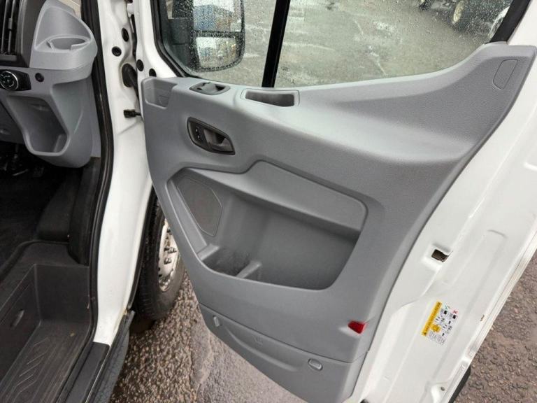 , 16in Steel Wheels, 8-Way Driver Seat with Fore-Aft - Recline -Height and Tilt, Airbags - Driver, Anti-Lock Braking System - ABS with Electronic Brake Force Distribution - EBD, Armrest - Drivers, Assist Handle - Located on B-pillar, Auxiliary Connection Point - 1x12V - 60A Connection Located Under Driver Seat Pedestal, Battery - Cold Start -20 Degree C, Battery - Single Improved Flood - IF, Bodyside Mouldings - Wide - Self Colour, Bottle Holder - Twin 2 litre Bottle Capacity - Facia-Mounted, Bulkhead - Full Steel, Bumper - Front Body Colour - Partial, Courtesy Lights - Header-Mounted Front with Theatre Dimming, Curve Control, Daytime Running Lamps, Door Handles - Self Coloured, Door Mirrors - Blind Spot Eliminator and Integrated Side Indicator, Door Mirrors - Manual Adjust, Doors - Passengers Sliding Side Load Door and Step, Doors - Unglazed Rear Doors - Hinged for 180 Degree Opening - Positive Stop At 90 Degree, Driver Seat Belt Minder, Dual-Circuit Front and Rear Discs with Self-Adjusting Servo-Assistance and ABS, EBA - Emergency Brake Assist, EDCC - Electronic Dynamic Cornering Control, ESC - Electronic Stability Control, Emergency Brake Warning, Floor Covering - Cab Easy-Clean Rubber, Ford Connected Audio System, Ford Easy-Fuel Capless Refuelling System, Ford Eco Mode - Driver Information System, Front Grille - Sterling Grey, Gearshift Indicator Light, Glovebox with A4 File Storage, Headlights - Courtesy Delay, Headlining - Cab - Moulded, Heater - Positive Thermal Coefficient - PTC, Hill Start Assist, Immobiliser - Safeguard Passive Anti-Theft System - PATS - Insurance-Approved Category 2 Immobiliser, Interior Lighting - Battery Saver - 30min, LAC - Load Adaptive Control, Less Easy Clean Floor, Less Steel Spare Wheel, Liftgate - Cargo Door Handle - Self Colour, Load Compartment - DIN 75410 Compliant Tie-down Loops, Loadspace Compartment Light, Locks - Audio Mislock Feedback - Audible Signal if a Door is Ajar When Locking Activated, Locks - Auto Locking on Drive-Away - Doors Automatically Lock at 8 kmh or 5 mph, Locks - Auto Relocking - Doors Relock after 45 Seconds if no Door is Opened, Locks - Configurable Unlocking, Locks - Key Operated Bonnet Release, Locks - Power Door Deadlocks - Shielded with Strengthened Mountings, Locks - Remote Control Central Locking with One Key Fob, Mud Flaps - Rear, Overhead Storage Shelf, Power Point Socket - 2x 12V, Power-assisted Steering - PAS, RSC - Roll Stability Control, Rear Bumper - Self Colour with Integrated Step, Recirculation Heater - Front, Seat Belts - 3-Point Diagonal Inertia Reel - All Seats, Seat Tray-Table, Seats - Dual Passenger, Side Wind Mitigation, Standard Duty Alternator - 150amp, Steering Column - Rake and Reach Adjustment, Steering Wheel - 4 Spoke Polyurethane, Storage - Drivers Side - Storage Compartment on Facia Top with Lift Up Lid, Storage - Front Door Map Pockets, Storage - Underseat Stowage Compartment Under Dual Passenger Seat, Suspension - Front Independent MacPherson Struts -Variable Rate Coil Springs - Stabiliser Bar - Gas-Pressurised Shock Absorbers and Rear Leaf Springs, Traction Control - TC, Trip Computer, Tyre Inflator Kit, Vehicle Identification Number - VIN - Visible, Water in Fuel Filter with Sensor, Wheel Covers - Half Caps, Windows - Electrically-Operated Front with One-Touch on Drivers Side, Wipers - Front Variable-Intermittent with Electric Wash