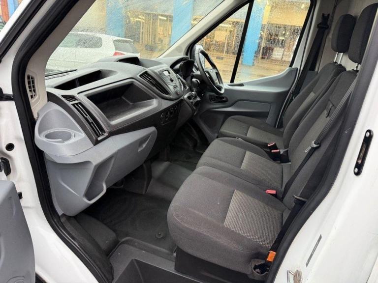 , 16in Steel Wheels, 8-Way Driver Seat with Fore-Aft - Recline -Height and Tilt, Airbags - Driver, Anti-Lock Braking System - ABS with Electronic Brake Force Distribution - EBD, Armrest - Drivers, Assist Handle - Located on B-pillar, Auxiliary Connection Point - 1x12V - 60A Connection Located Under Driver Seat Pedestal, Battery - Cold Start -20 Degree C, Battery - Single Improved Flood - IF, Bodyside Mouldings - Wide - Self Colour, Bottle Holder - Twin 2 litre Bottle Capacity - Facia-Mounted, Bulkhead - Full Steel, Bumper - Front Body Colour - Partial, Courtesy Lights - Header-Mounted Front with Theatre Dimming, Curve Control, Daytime Running Lamps, Door Handles - Self Coloured, Door Mirrors - Blind Spot Eliminator and Integrated Side Indicator, Door Mirrors - Manual Adjust, Doors - Passengers Sliding Side Load Door and Step, Doors - Unglazed Rear Doors - Hinged for 180 Degree Opening - Positive Stop At 90 Degree, Driver Seat Belt Minder, Dual-Circuit Front and Rear Discs with Self-Adjusting Servo-Assistance and ABS, EBA - Emergency Brake Assist, EDCC - Electronic Dynamic Cornering Control, ESC - Electronic Stability Control, Emergency Brake Warning, Floor Covering - Cab Easy-Clean Rubber, Ford Connected Audio System, Ford Easy-Fuel Capless Refuelling System, Ford Eco Mode - Driver Information System, Front Grille - Sterling Grey, Gearshift Indicator Light, Glovebox with A4 File Storage, Headlights - Courtesy Delay, Headlining - Cab - Moulded, Heater - Positive Thermal Coefficient - PTC, Hill Start Assist, Immobiliser - Safeguard Passive Anti-Theft System - PATS - Insurance-Approved Category 2 Immobiliser, Interior Lighting - Battery Saver - 30min, LAC - Load Adaptive Control, Less Easy Clean Floor, Less Steel Spare Wheel, Liftgate - Cargo Door Handle - Self Colour, Load Compartment - DIN 75410 Compliant Tie-down Loops, Loadspace Compartment Light, Locks - Audio Mislock Feedback - Audible Signal if a Door is Ajar When Locking Activated, Locks - Auto Locking on Drive-Away - Doors Automatically Lock at 8 kmh or 5 mph, Locks - Auto Relocking - Doors Relock after 45 Seconds if no Door is Opened, Locks - Configurable Unlocking, Locks - Key Operated Bonnet Release, Locks - Power Door Deadlocks - Shielded with Strengthened Mountings, Locks - Remote Control Central Locking with One Key Fob, Mud Flaps - Rear, Overhead Storage Shelf, Power Point Socket - 2x 12V, Power-assisted Steering - PAS, RSC - Roll Stability Control, Rear Bumper - Self Colour with Integrated Step, Recirculation Heater - Front, Seat Belts - 3-Point Diagonal Inertia Reel - All Seats, Seat Tray-Table, Seats - Dual Passenger, Side Wind Mitigation, Standard Duty Alternator - 150amp, Steering Column - Rake and Reach Adjustment, Steering Wheel - 4 Spoke Polyurethane, Storage - Drivers Side - Storage Compartment on Facia Top with Lift Up Lid, Storage - Front Door Map Pockets, Storage - Underseat Stowage Compartment Under Dual Passenger Seat, Suspension - Front Independent MacPherson Struts -Variable Rate Coil Springs - Stabiliser Bar - Gas-Pressurised Shock Absorbers and Rear Leaf Springs, Traction Control - TC, Trip Computer, Tyre Inflator Kit, Vehicle Identification Number - VIN - Visible, Water in Fuel Filter with Sensor, Wheel Covers - Half Caps, Windows - Electrically-Operated Front with One-Touch on Drivers Side, Wipers - Front Variable-Intermittent with Electric Wash